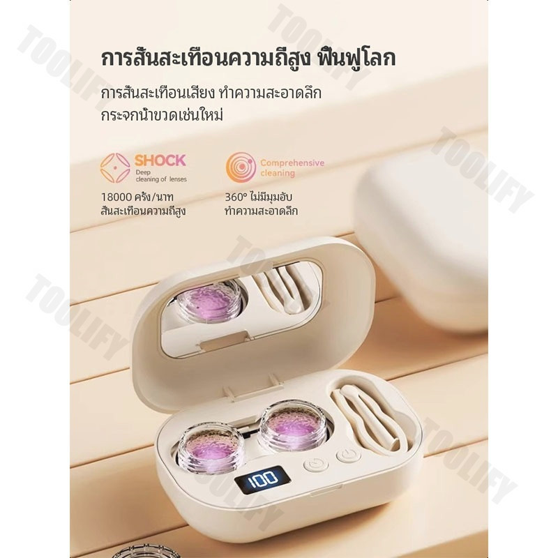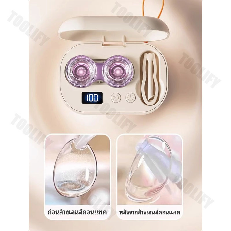 ?จัดส่งตอนนี้?เครื่องล้างคอนแทคเลนส์ ทำความสะอาดอัลตราโซนิก 360° โดยไม่มีจุดบอด ชาร์จยูเอสบี