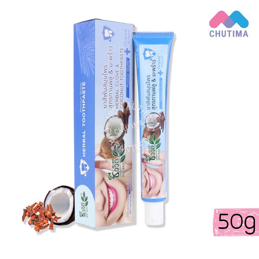 ยาสีฟันสมุนไพร ชีววิถี เฮอร์เบิล โคลฟ แอนด์ โคโค่นัท ทูธเพสท์ Chivavithi Herbal Clove&Coconut Toothpaste 50 g.