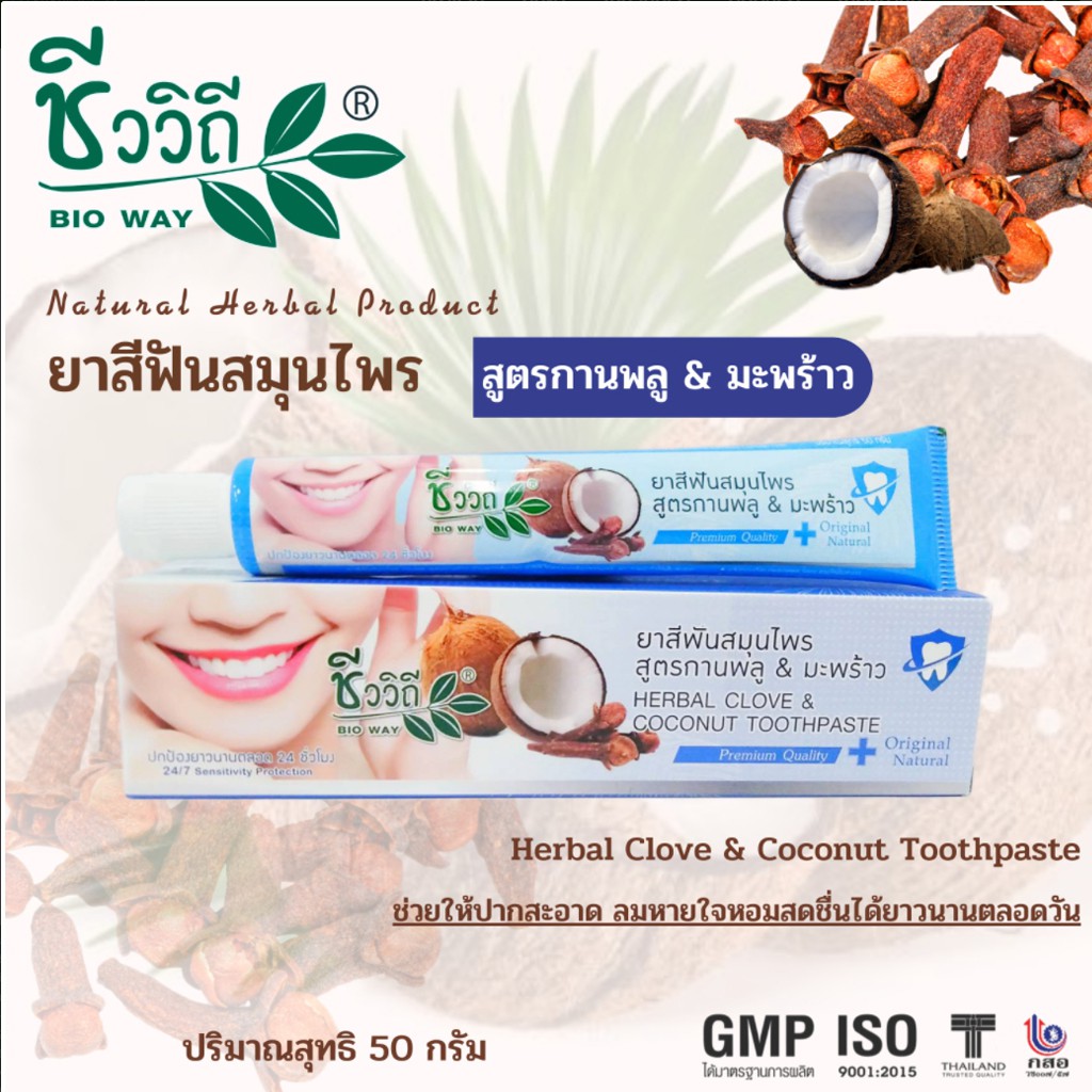 ยาสีฟันสมุนไพรสูตรกานพลู ผสม มะพร้าว ช่วยลดกลิ่นปาก ช่วยขจัดครบเหลืองจากบุหรี่,ชา,กาแฟ