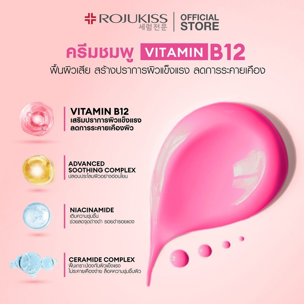 (1ซอง) Rojukiss B12 Pink Vitamin Skin Barrier Moisturizer 10ml มอยเจอร์ไรเซอร์ ฟื้นฟูผิว