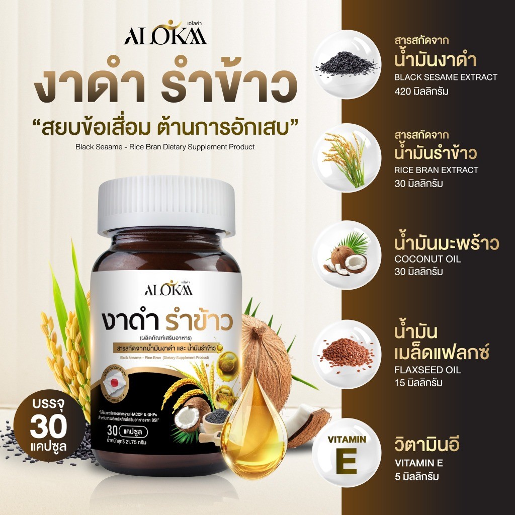[ 3แถม2 ] Alokaa งาดำรำข้าว บำรุงข้อ ลดคอเลสเตอรอล แคลเซียมสูง