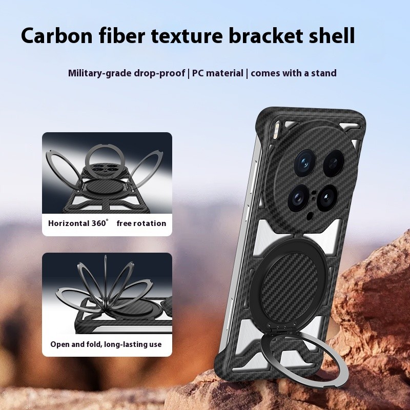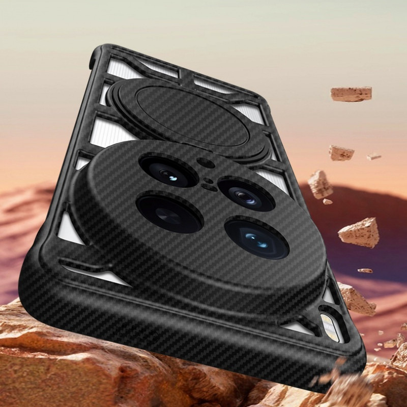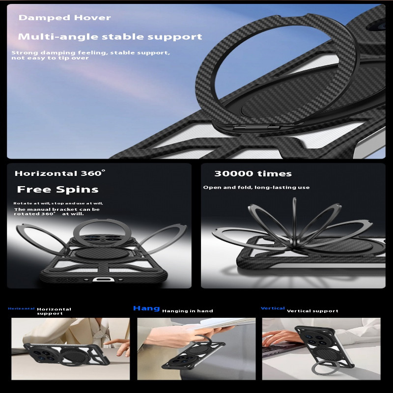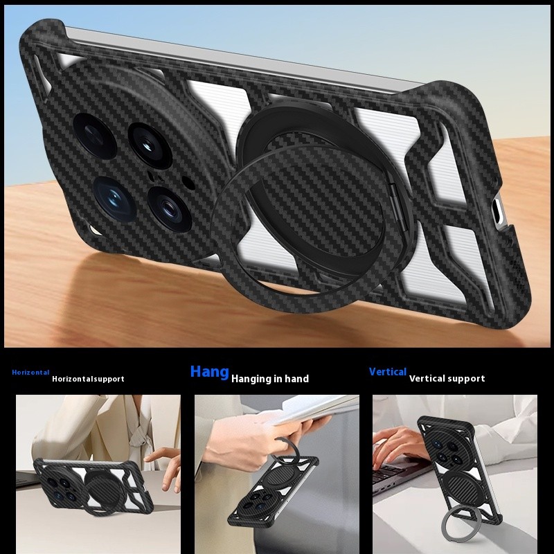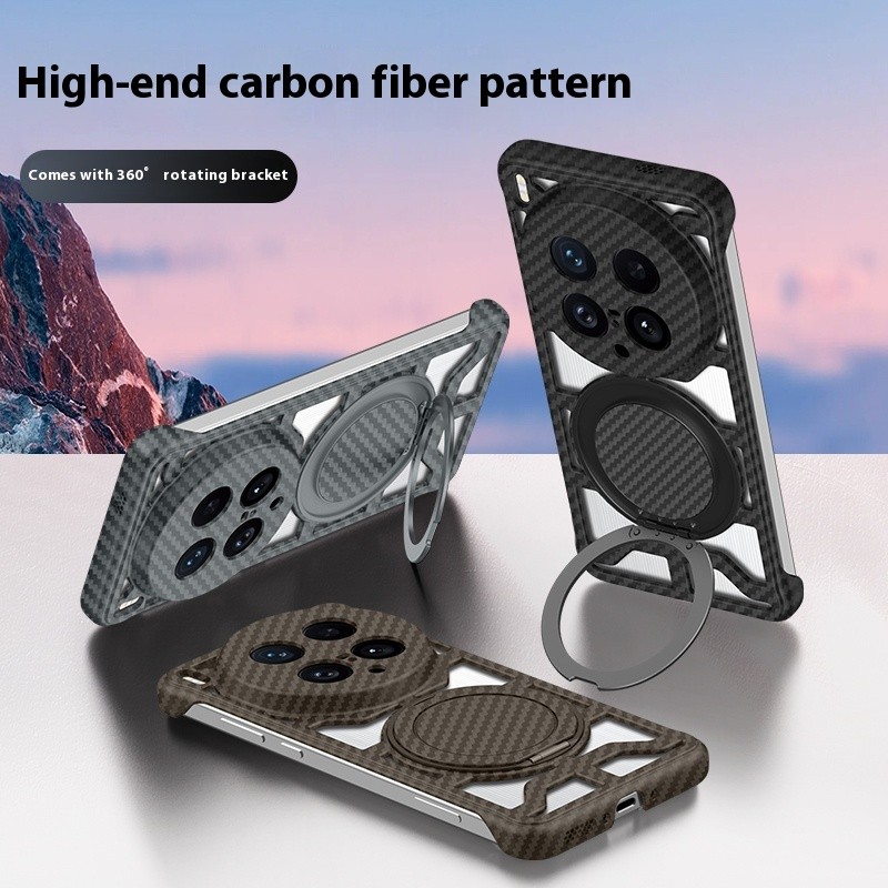 สำหรับ VIVO X200 Ultra X200 Pro X200S V40 X100 Ultra X100 Pro เคสลายคาร์บอนไฟเบอร์แบบด้าน ระบายความร้อนแบบกลวง ขาตั้งแม่เหล็กหมุนได้ เคสแข็งกันกระแทกด้านหลัง