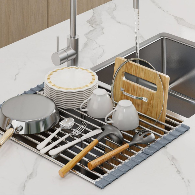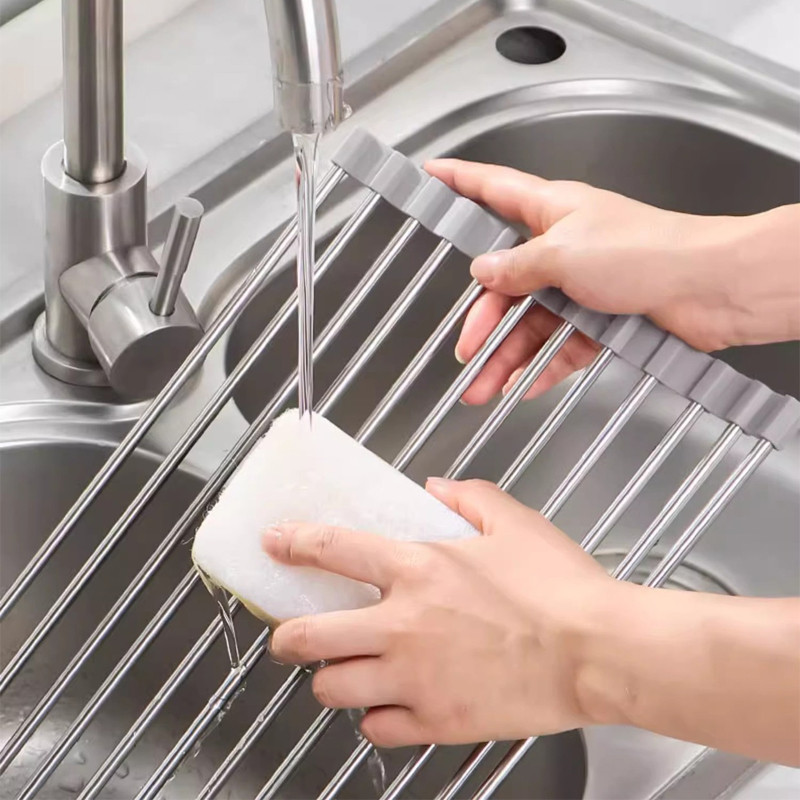 ชั้นวางระบายน้ำสแตนเลส304 พับได้ หนาพิเศษ สำหรับอ่างล้างจาน จัดเก็บจาน-ชาม-ผัก-ผลไม้ ทนร้อน-เย็น