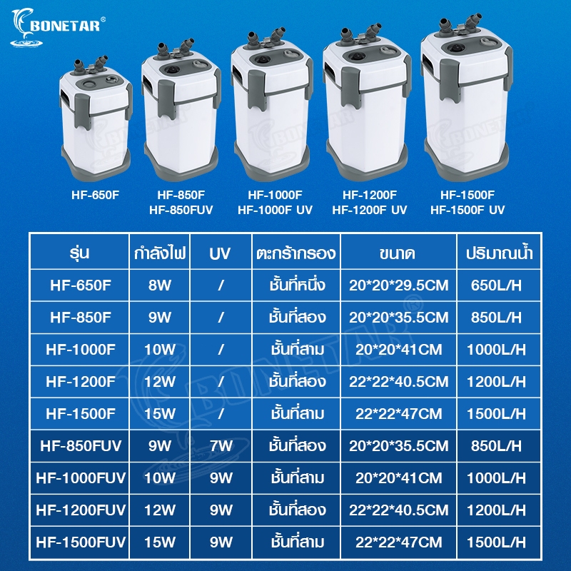 กรองนอกตู้ปลาBONETAR HF-650F/850F/1000F/1200F/1500UV กรองน้ำนอกตู้ ตัวกรองขนาดใหญ่สำหรับตู้ปลาพร้อมตัวกรองกลองภายนอก
