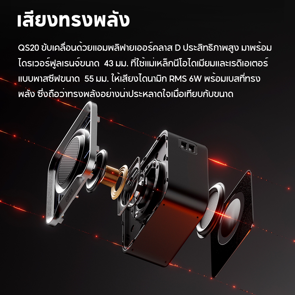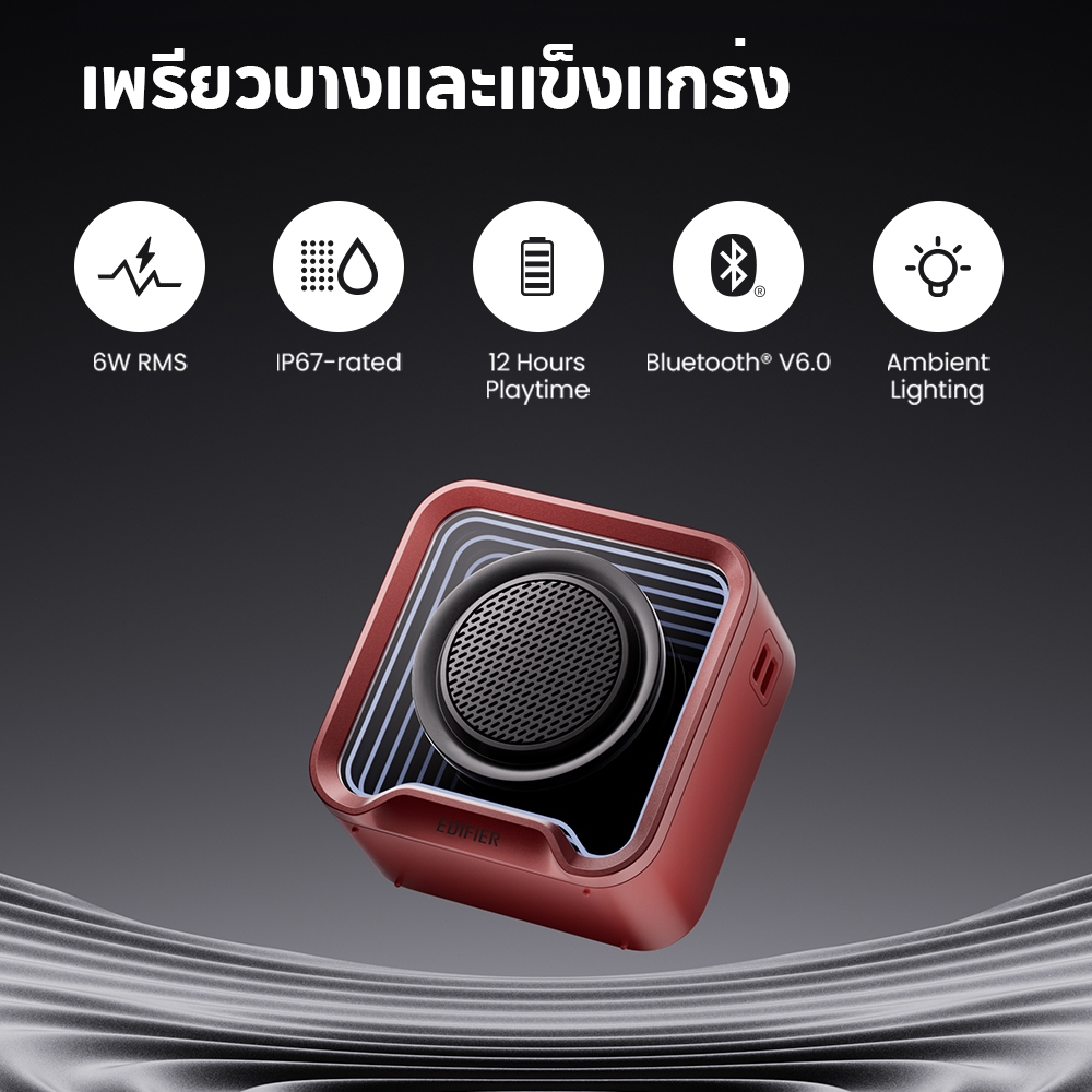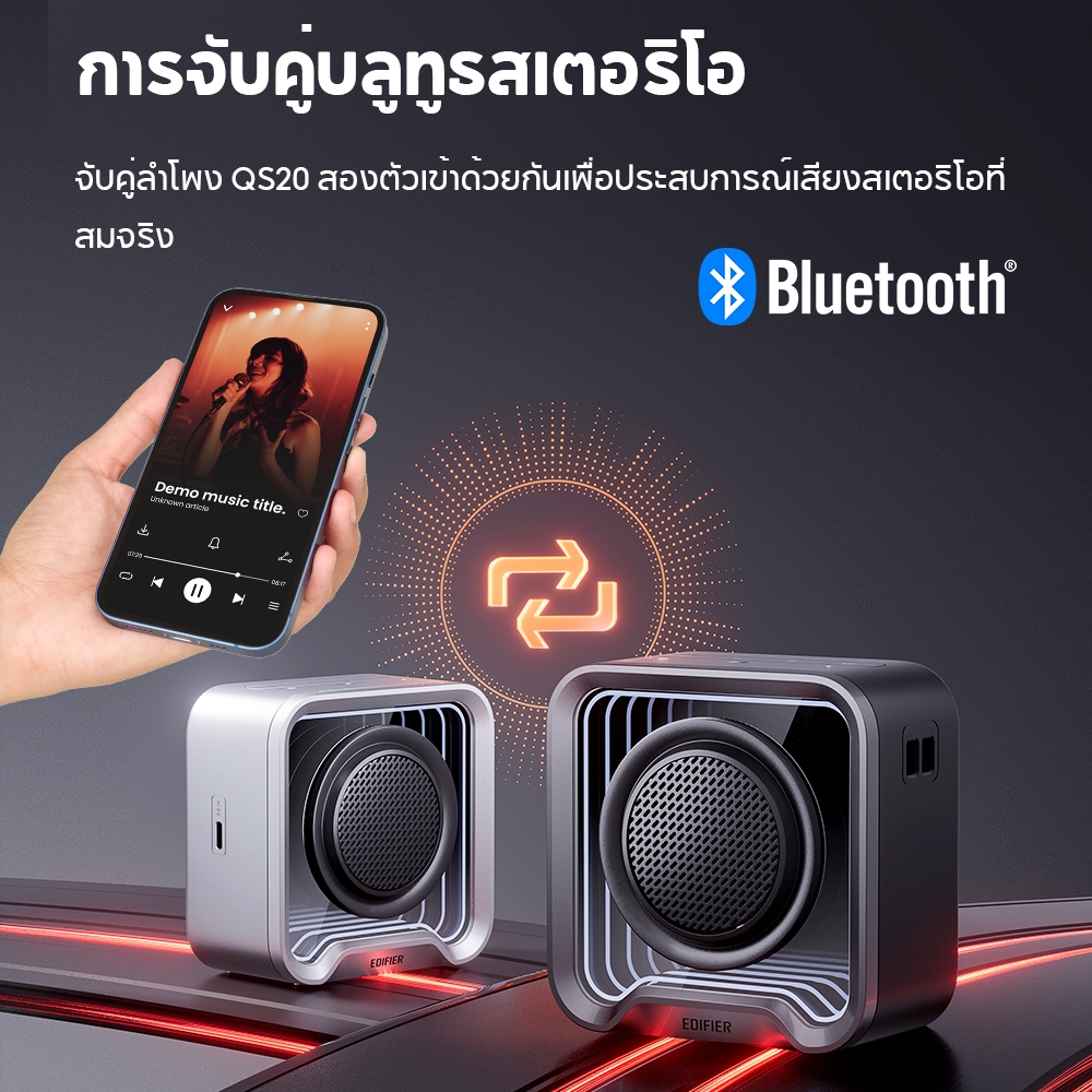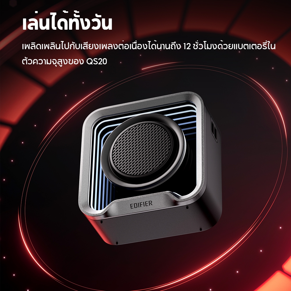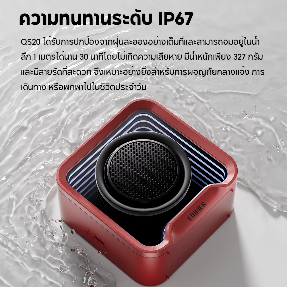 Edifier QS20 ลำโพงบลูทูธพกพา Bluetooth V6.0 6W (RMS) พร้อมเอฟเฟกต์แสง MIC กันน้ำระดับ IP67 จับคู่เสียงสเตอริโอ