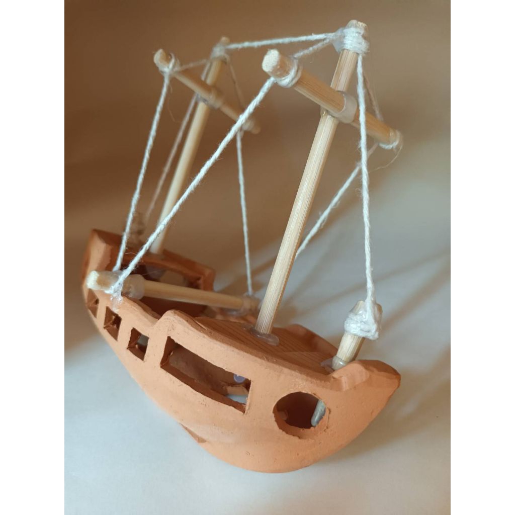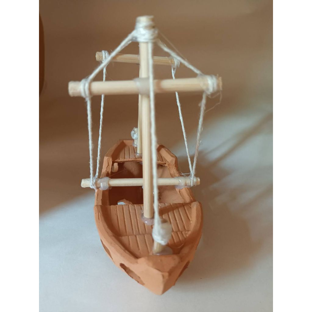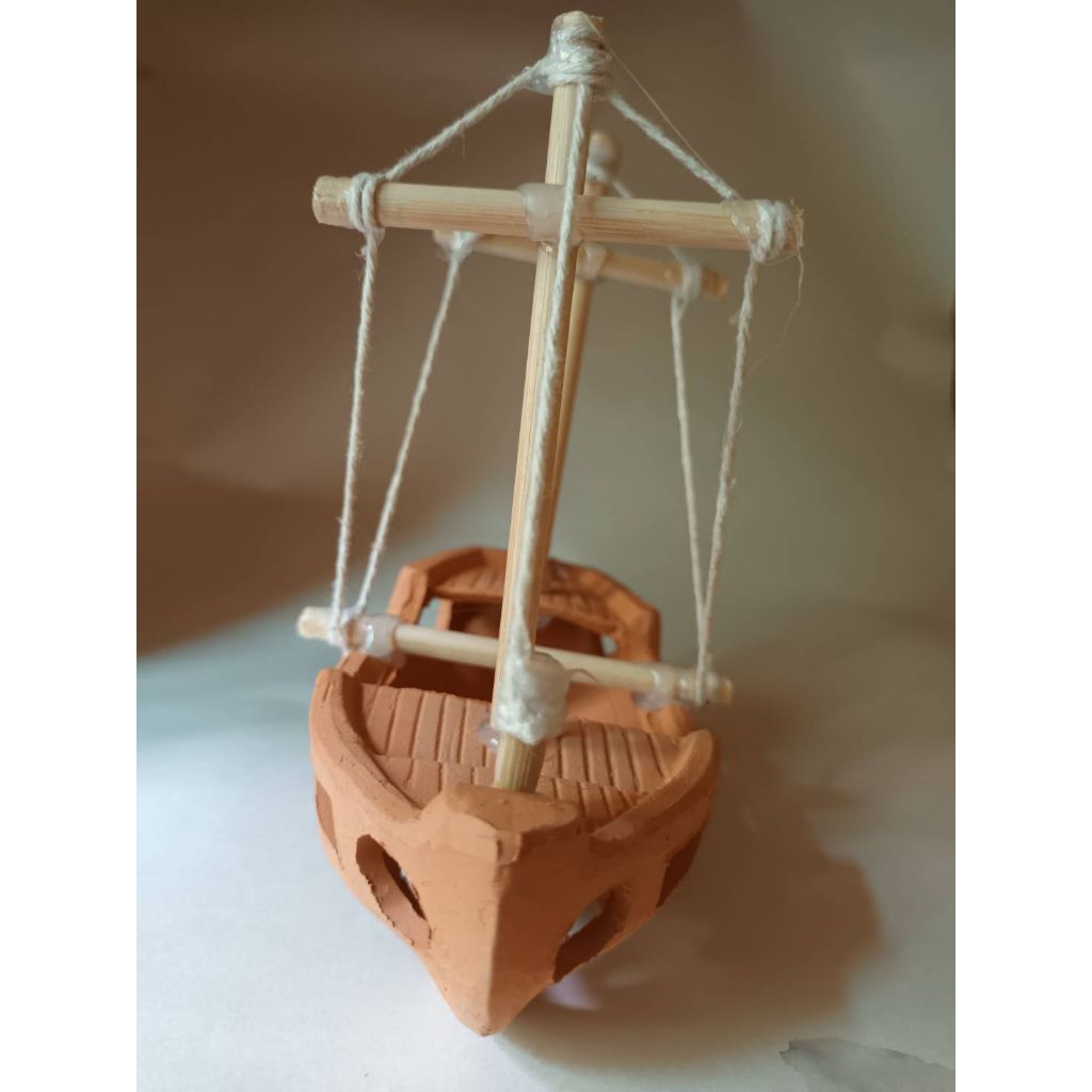 ????เรือใหญ่ดินเผา ขนาดกลาง3x5x5นิ้ว รวมเสากระโดน