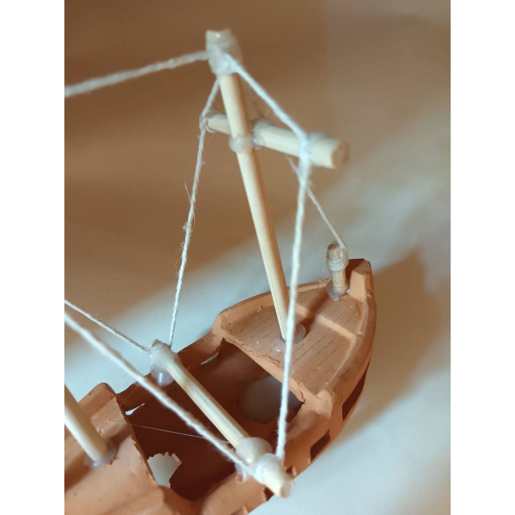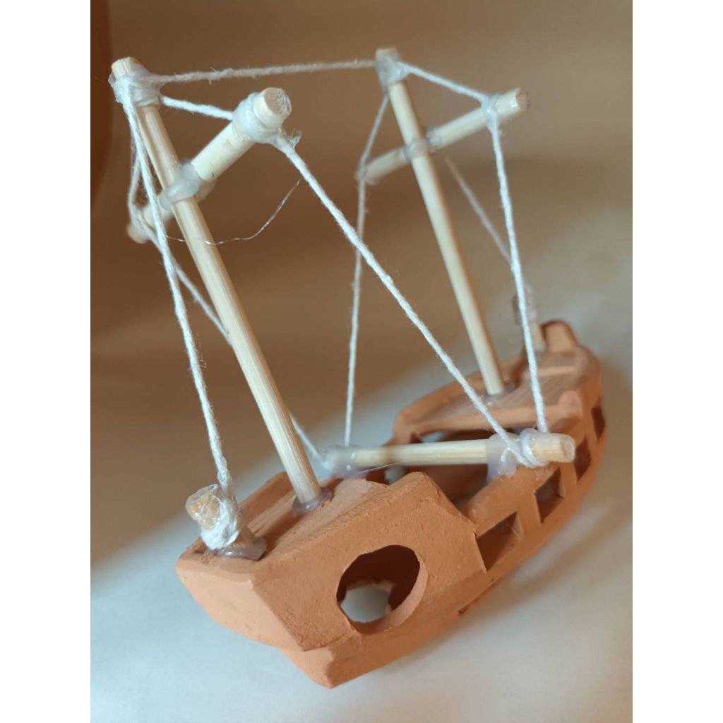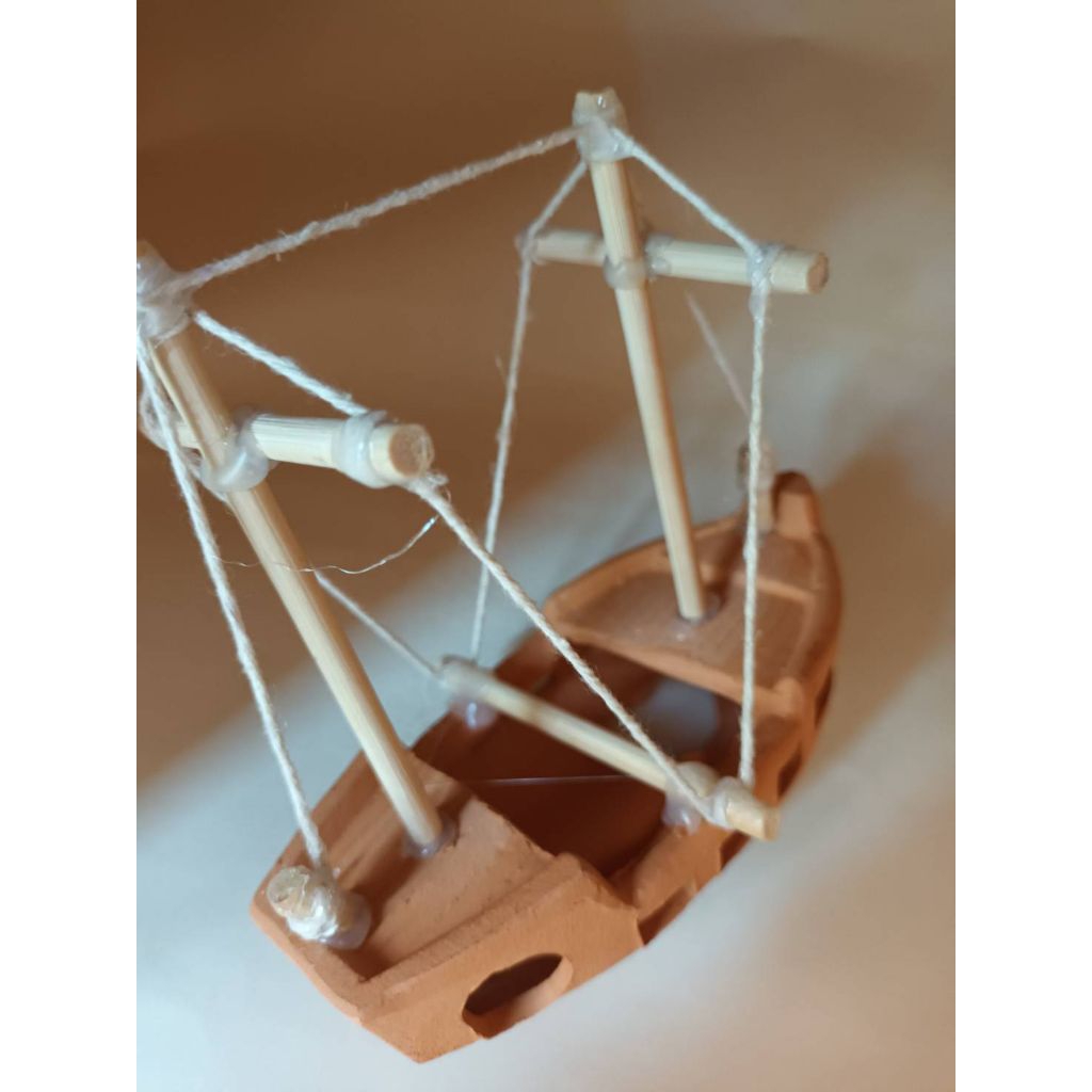 ????เรือใหญ่ดินเผา ขนาดกลาง3x5x5นิ้ว รวมเสากระโดน