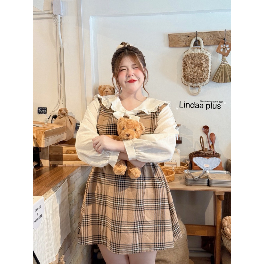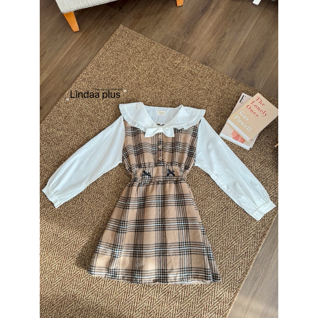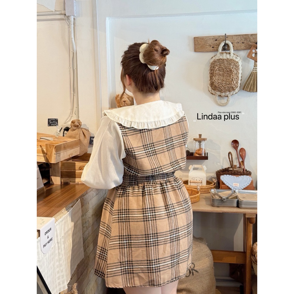 LD ชุดเดรสคอบัวสุดน่ารัก?? ผ้าคอตตอนเนื้อดี ลายสก๊อตเนื้อดี ติดโบว์ ไซส์ใหญ่ สาวอวบ