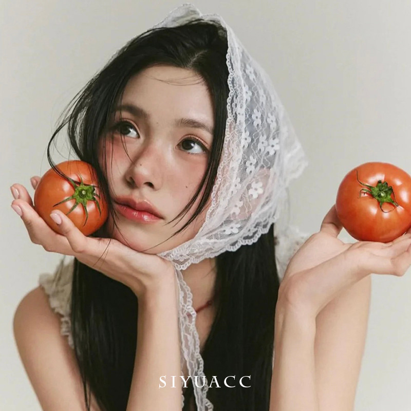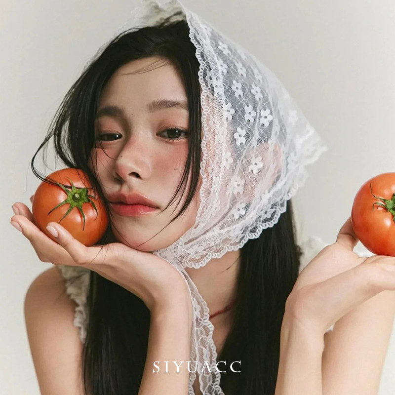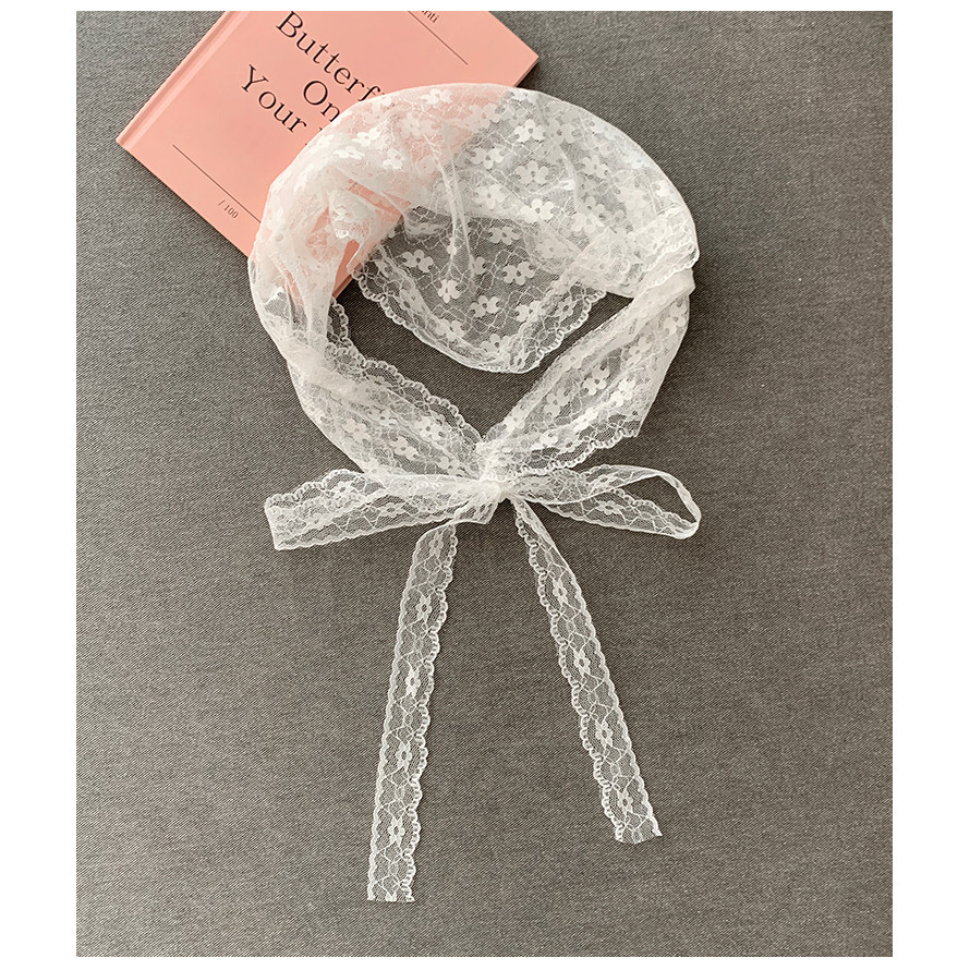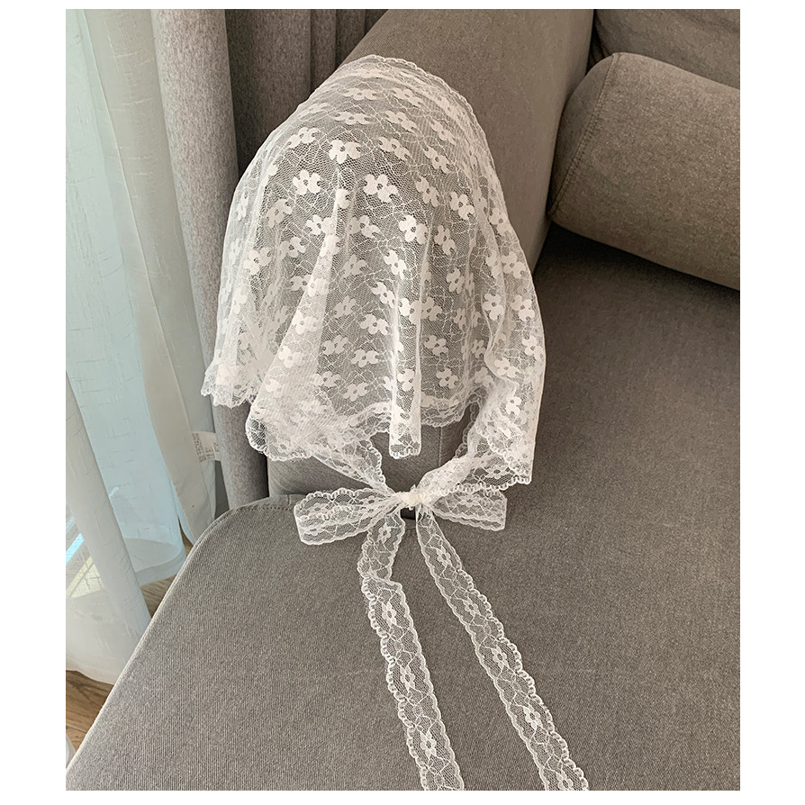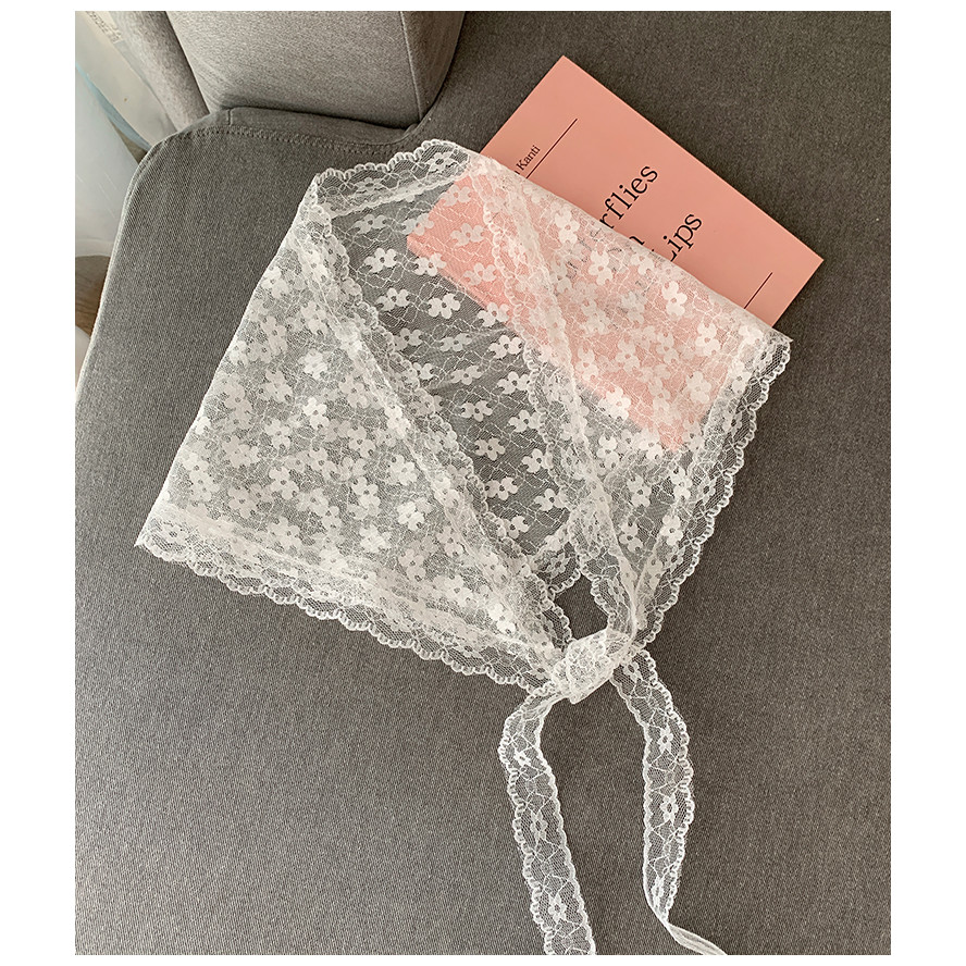 (ส่งจากกรุงเทพฯ)ผ้าคลุมผมสามเหลี่ยมลูกไม้สไตล์ฝรั่งเศส ดีไซน์วินเทจลายดอกไม้ เนื้อบางเบาระบายอากาศ ใส่ได้ทุกฤดู