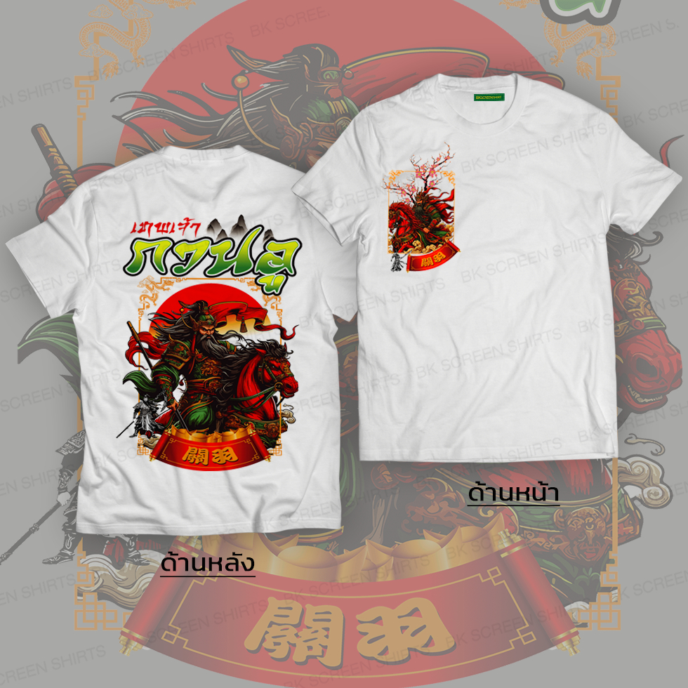 เสื้อยืดสกรีนลาย เทพเจ้ากวนอู03 TJ03 สีขาว เนื้อผ้าโพลีเอสเตอร์100%นุ่มใส่สบายไม่ร้อน ตรงปก