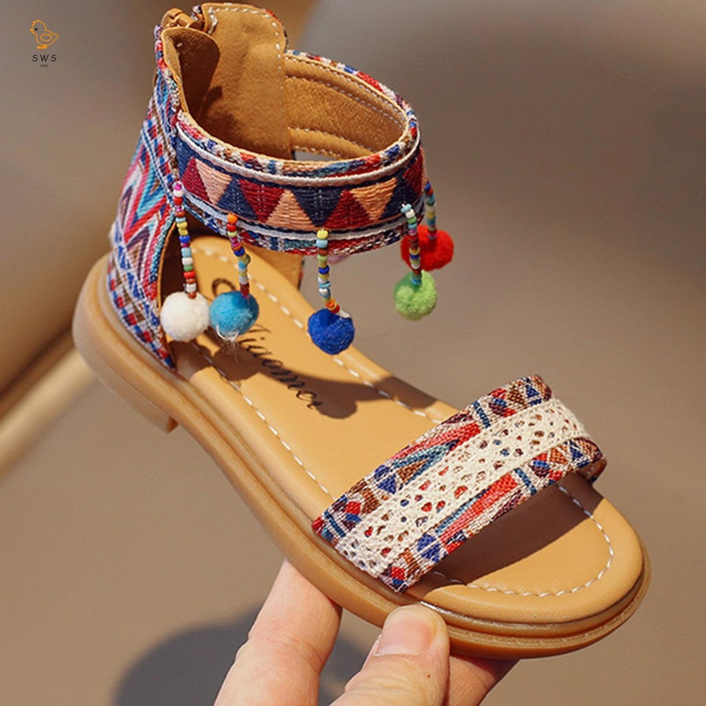รองเท้าแตะสไตล์โบฮีเมียน พร้อมสายรัดข้อเท้า สำหรับวันหยุด เดินป่า และออกเดท