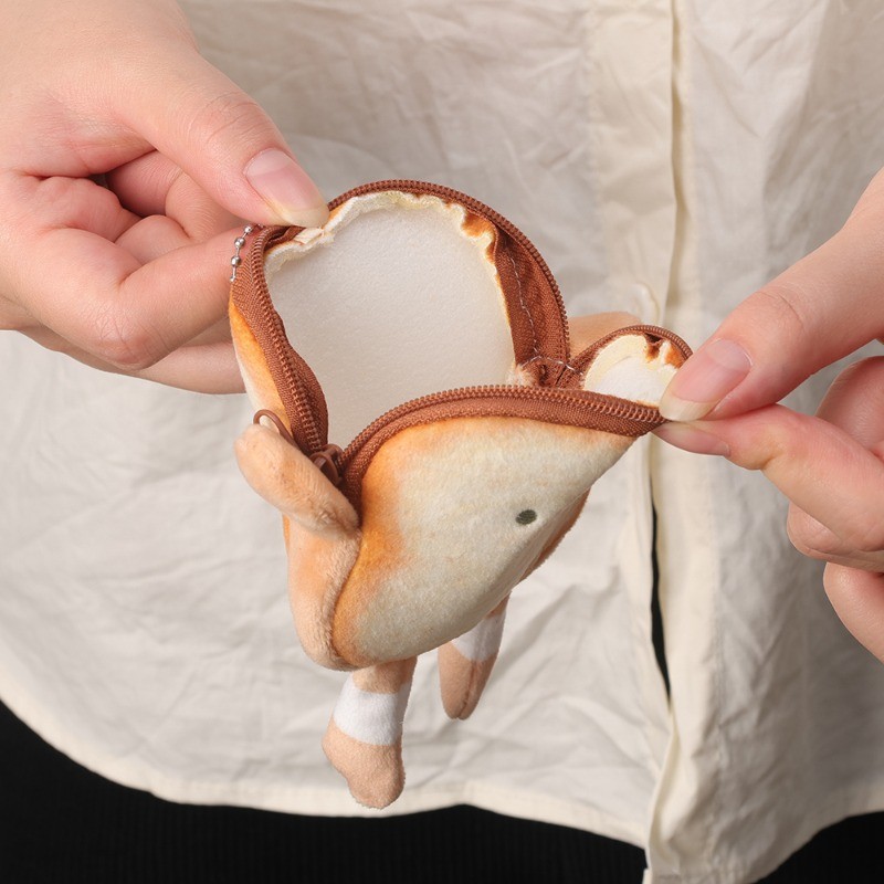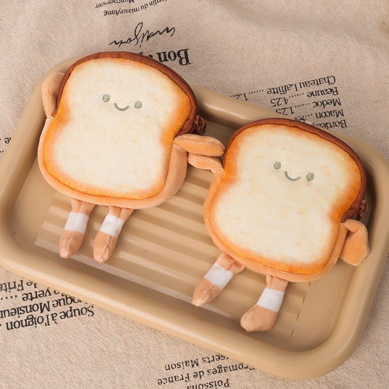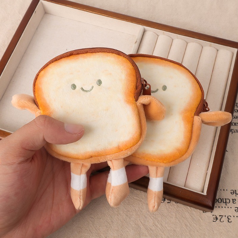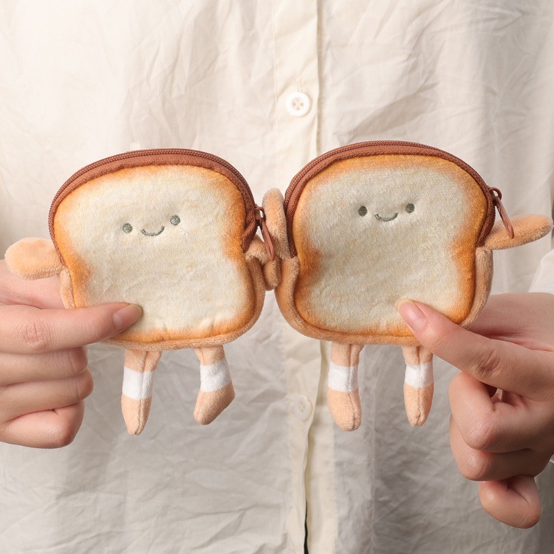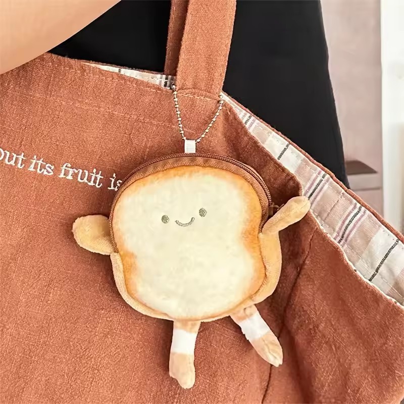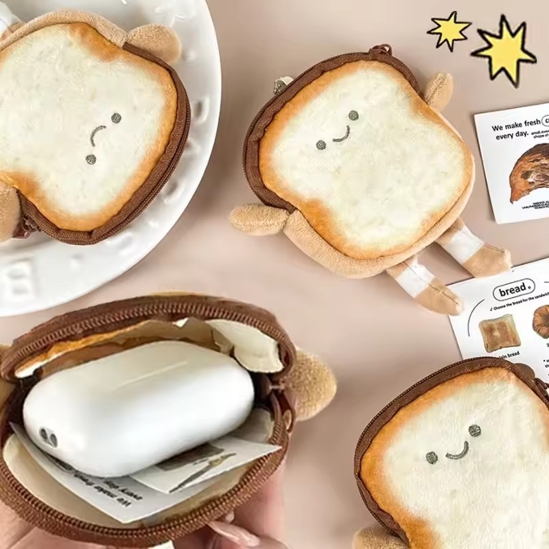 กระเป๋าสตางค์เก็บเหรียญหูฟังรูปขนมปังปิ้งขนาดเล็กมีสไตล์ – กระเป๋าเงินการ์ตูนแบบแขวนได้สะดวก