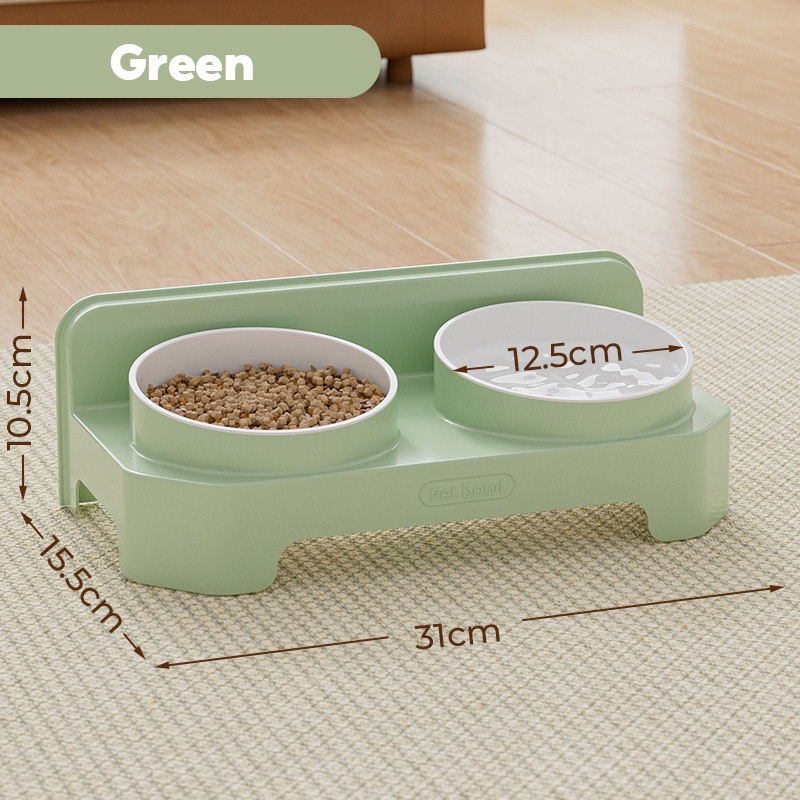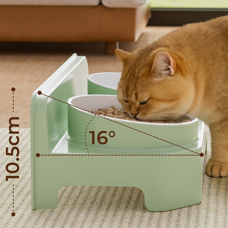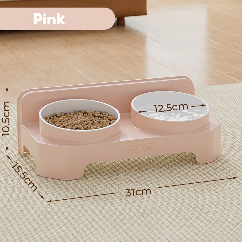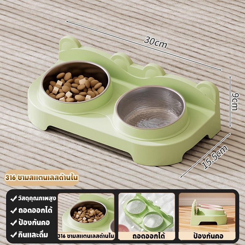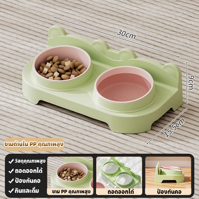 ชามแมวสองชั้น ชามอาหารแมว จานอาหารแมว ชามสุนัข ยกสูง ชามคู่ ถอดออกได้ เพิ่มความลึก วัสดุ PP
