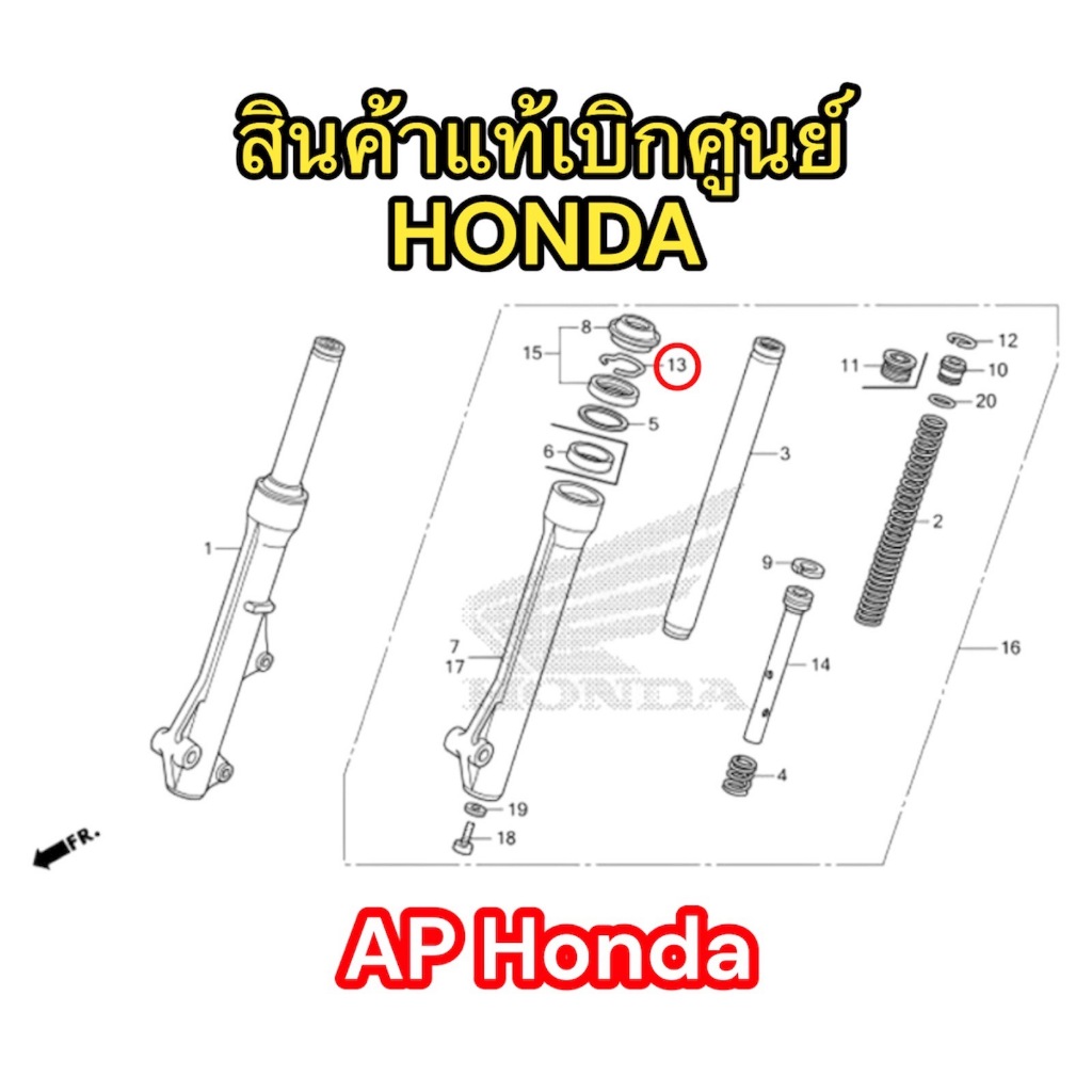 แหวนบังคับซีลกันน้ำมัน กิ๊บล็อคซีลโช้คหน้า(51466-065-901)แท้ศูนย์ Wave125S,R,X /บังลม /ปลาวาฬ /125iLEDปี19-25 /110i /100