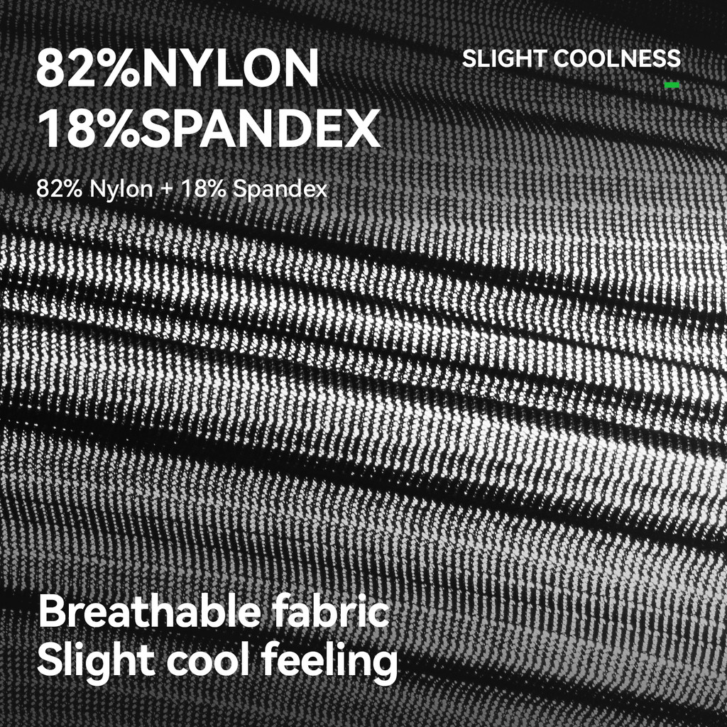 ผ้าไนลอน 5.82% + สแปนเด็กซ์ 18% ระบายอากาศได้ดีให้ความรู้สึกเย็นสบายเล็กน