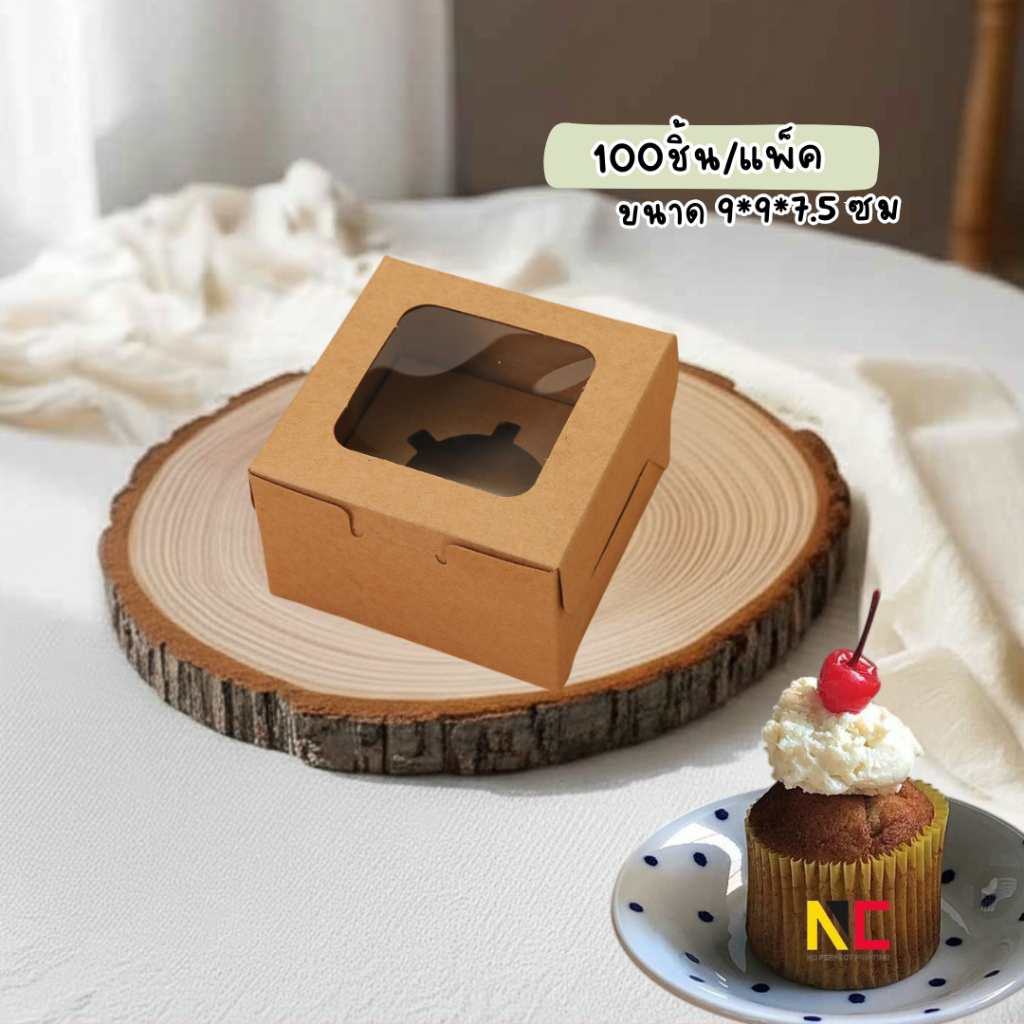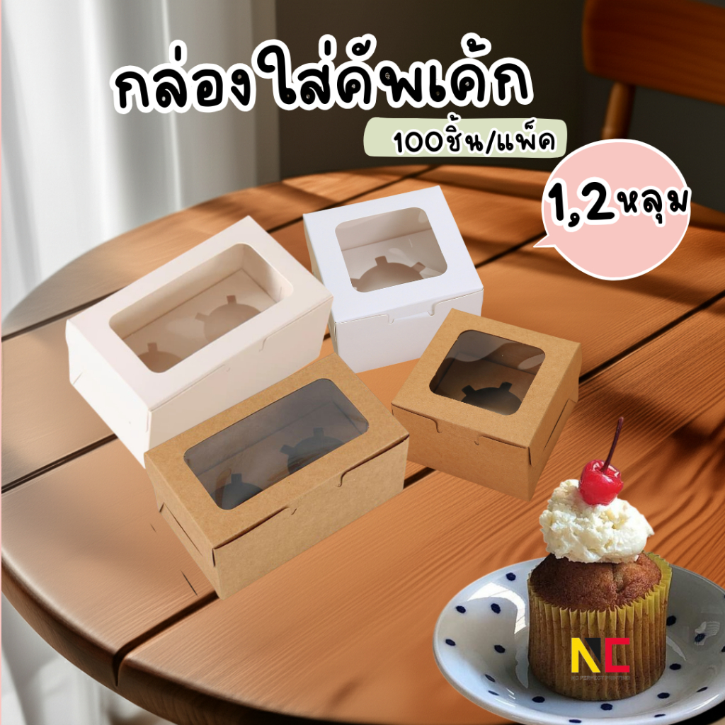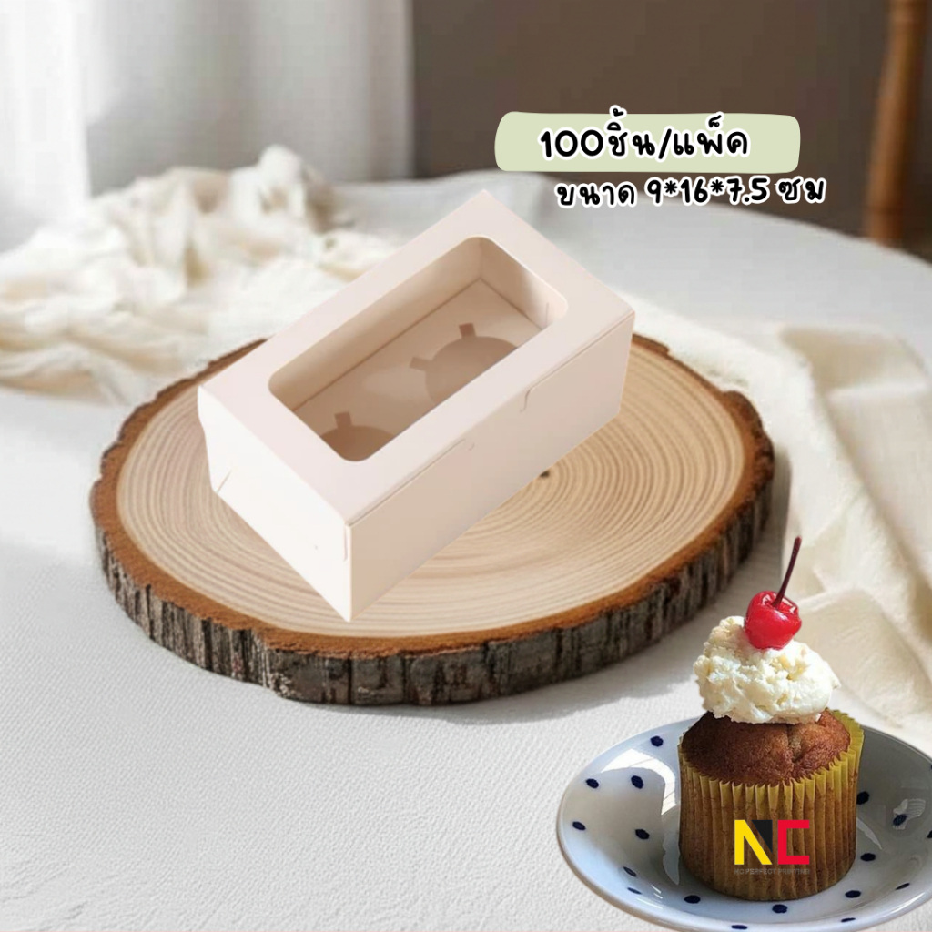 กล่องคัพเค้ก กล่องเบเกอร์รี่ พร้อมฐานหลุม 1,2 ช่อง (แพ็ค100ชิ้น) พร้อมส่ง
