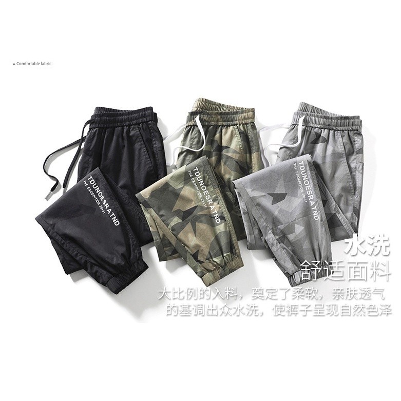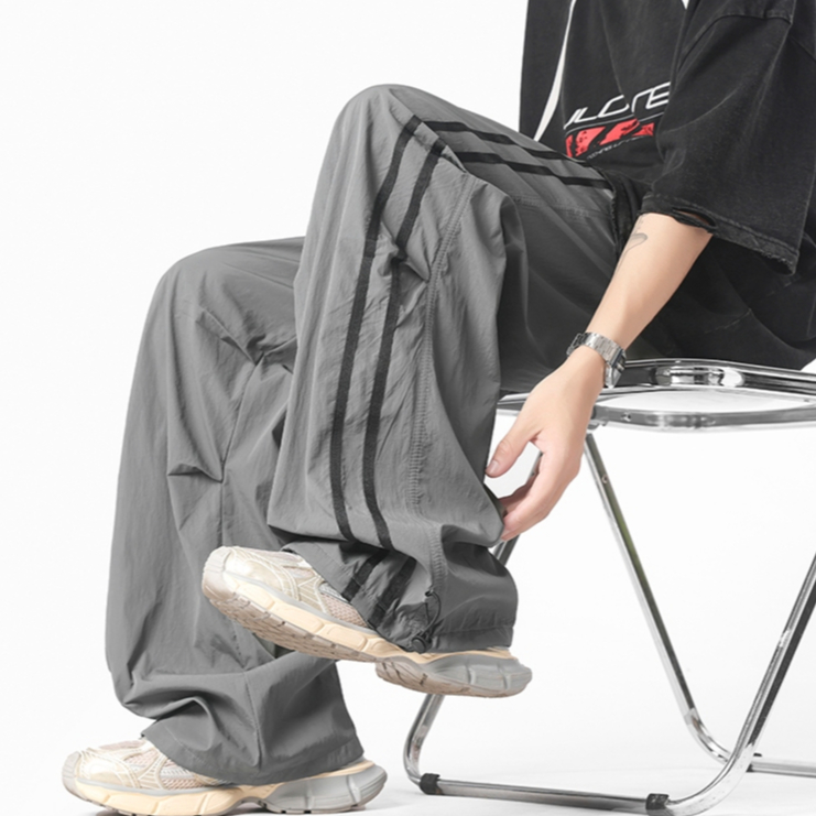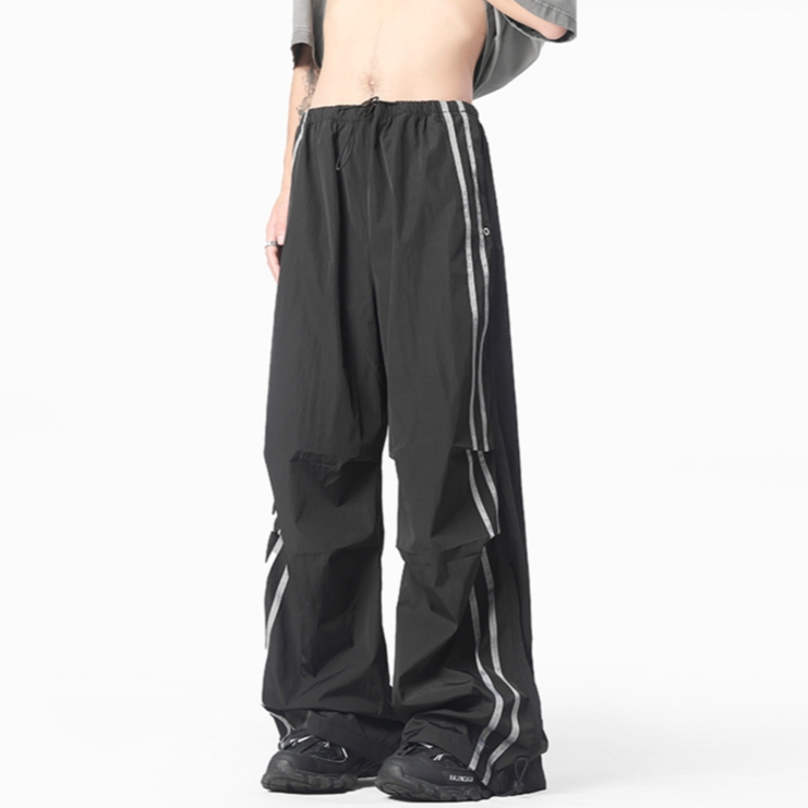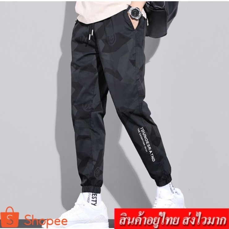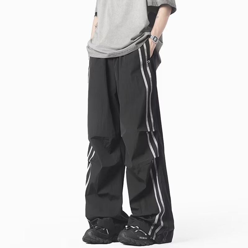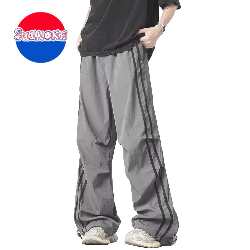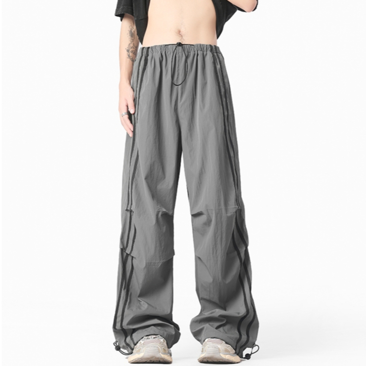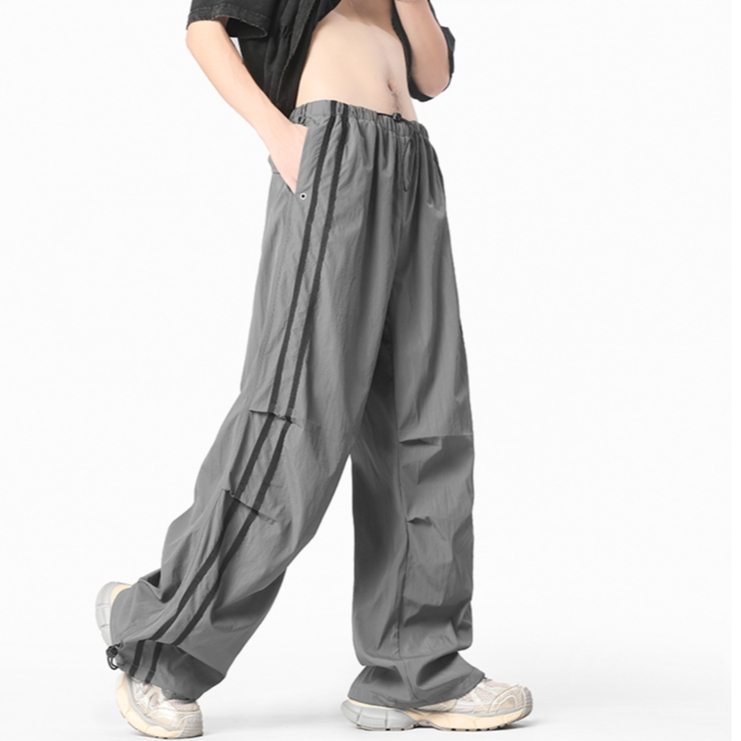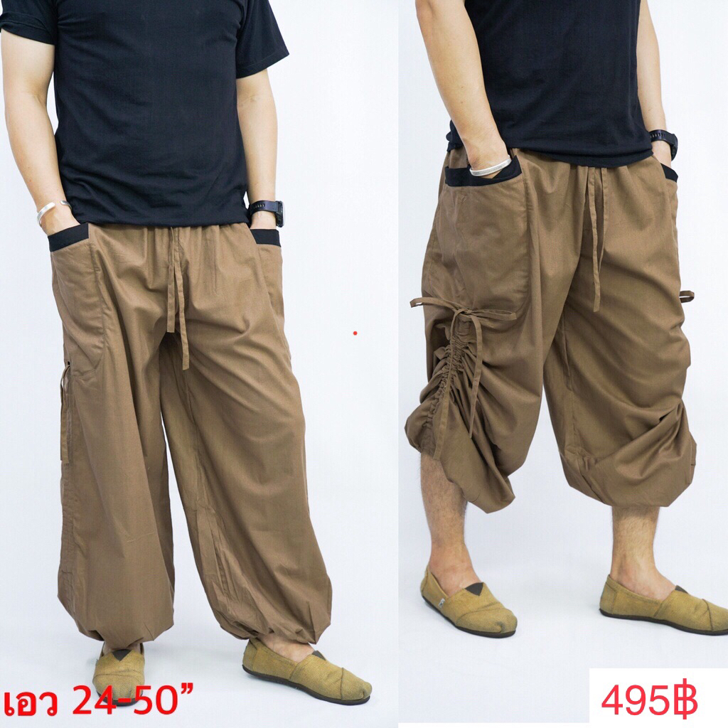 ?BecoolMan?กางเกงทำงานผู้ชาย รุ่นขากว้าง เอวยางยืด กระเป๋าหลายใบ ลำลอง