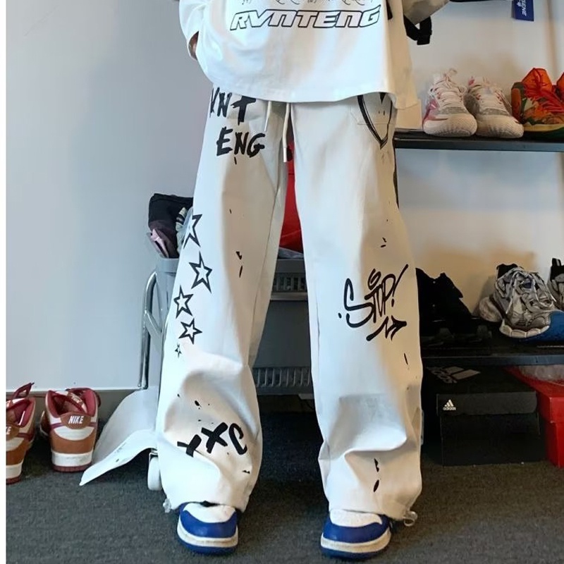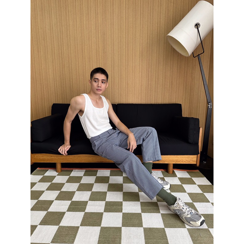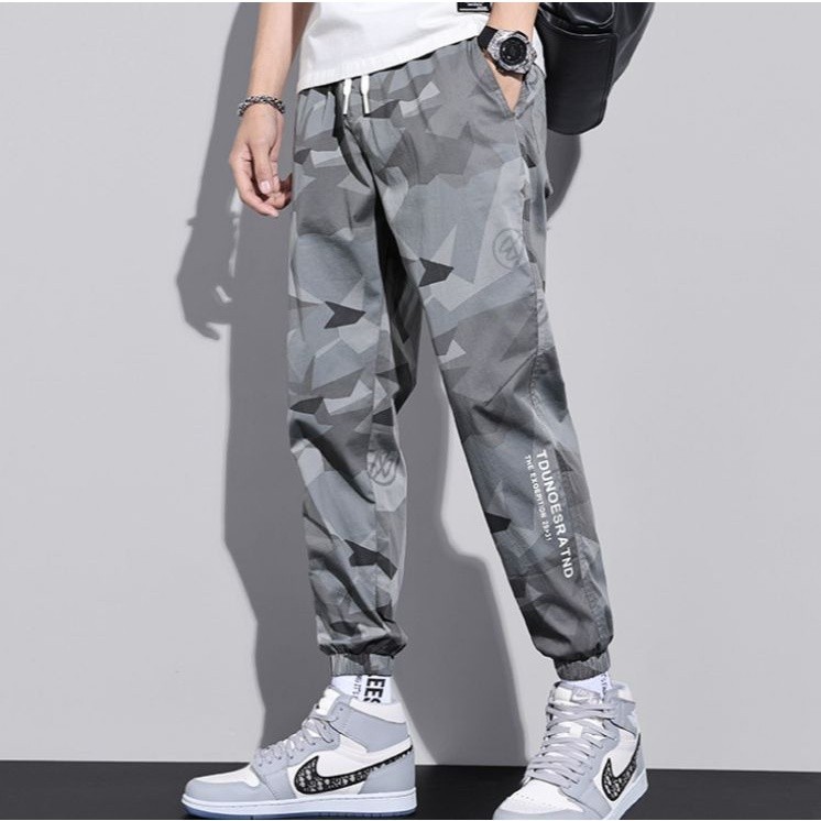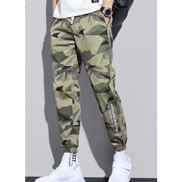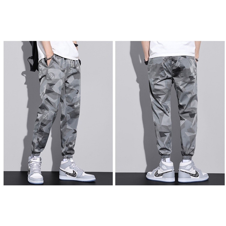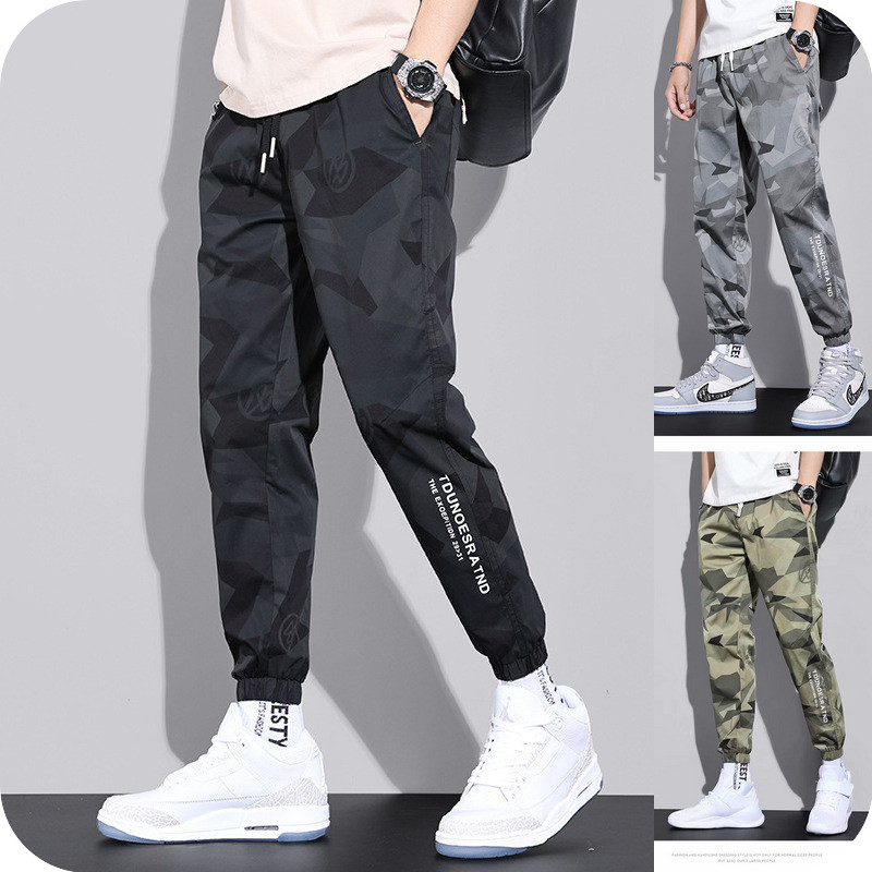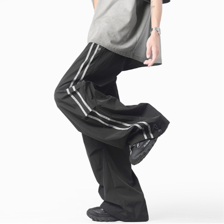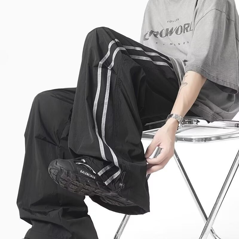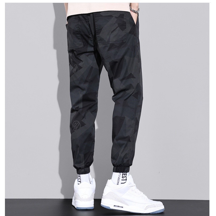 ?BecoolMan?กางเกงทำงานผู้ชาย รุ่นขากว้าง เอวยางยืด กระเป๋าหลายใบ ลำลอง