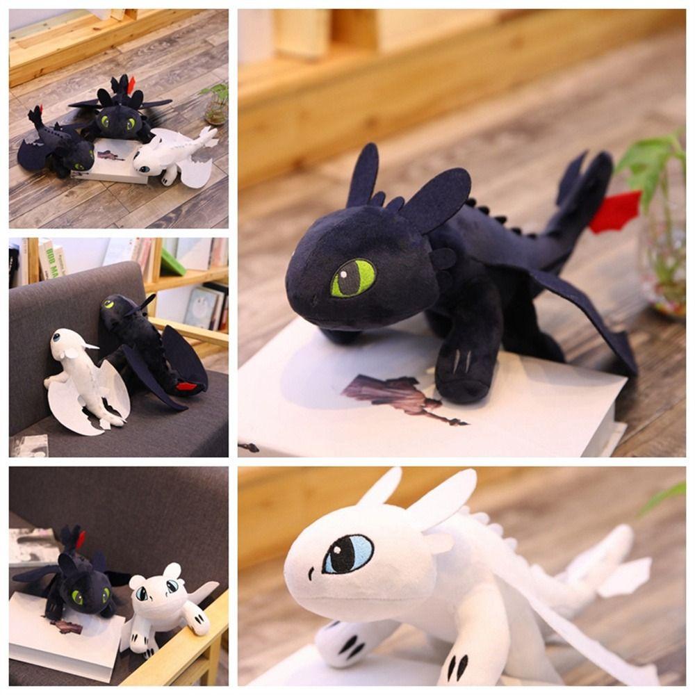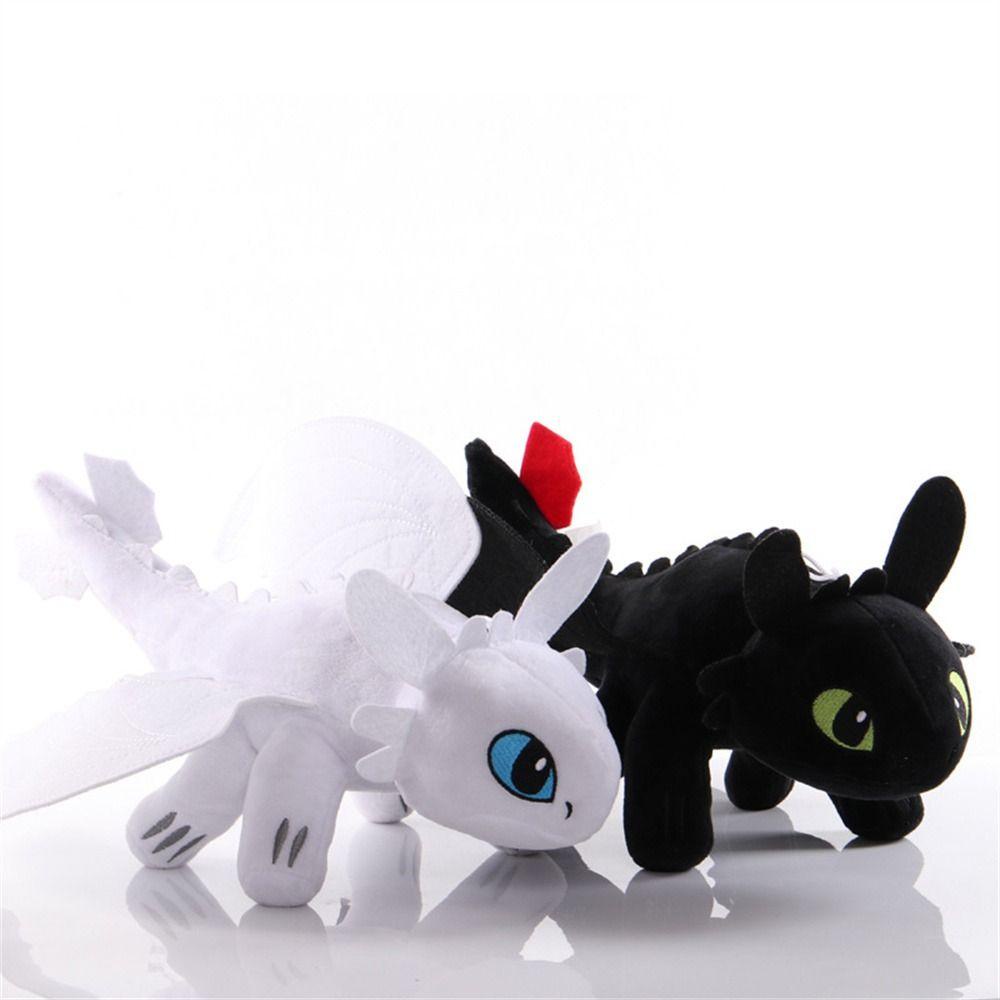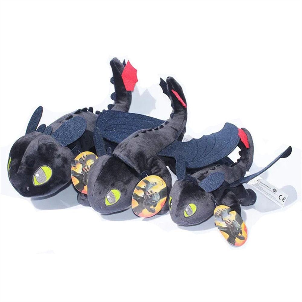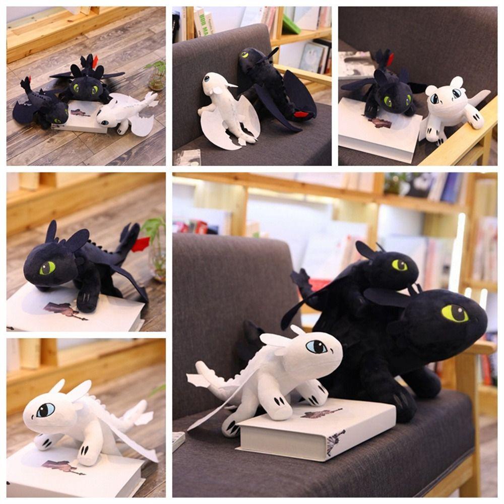 แฟลชลี ตุ๊กตามังกรเขี้ยวกุด, How To Train Your Dragon 3 อะนิเมะรูป How To Train Your Dragon Plush, 20/27/35 ซม.การ์ตูนสัตว์สีดําสีขาวมังกรตุ๊กตาของเล่น