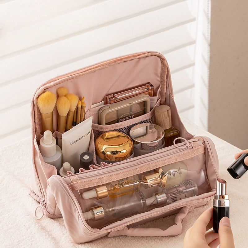 กระเป๋าแต่งหน้าแนวตั้งสไตล์เกาหลีสําหรับผู้หญิงเดินทางแบบพกพากระเป๋าเก็บเครื่องสําอางกระเป๋าแป้งความจุขนาดใหญ่มูลค่าสูง