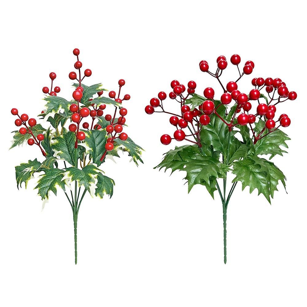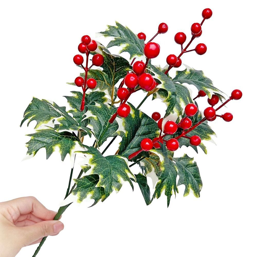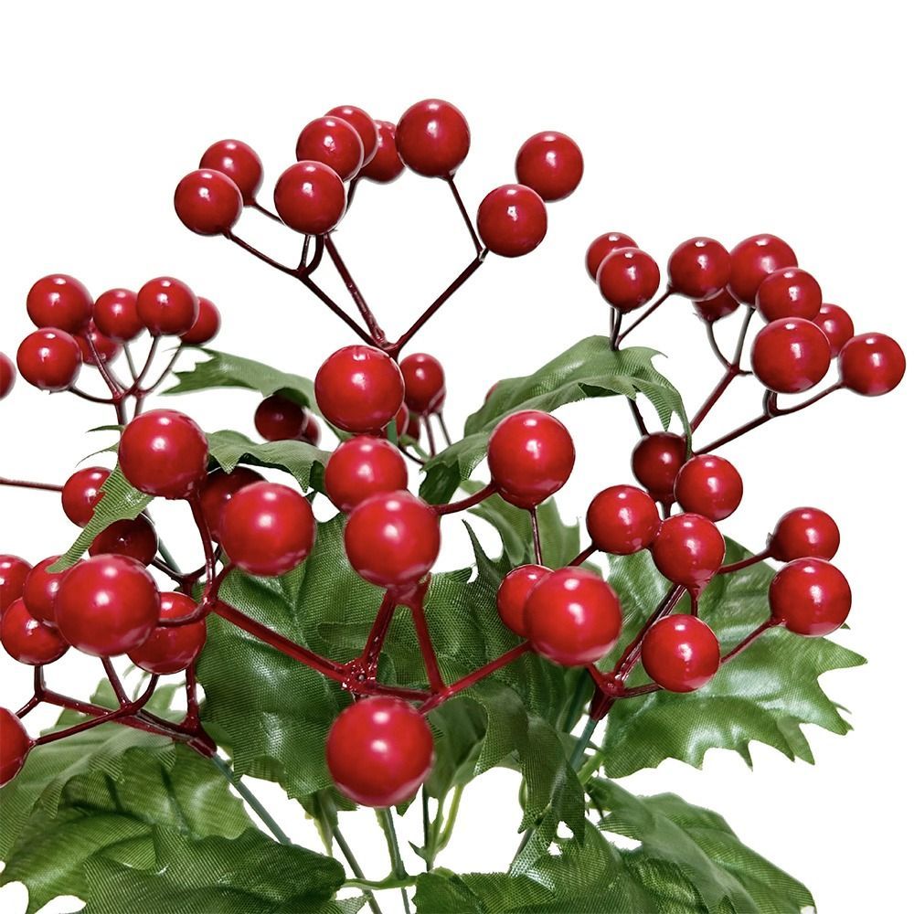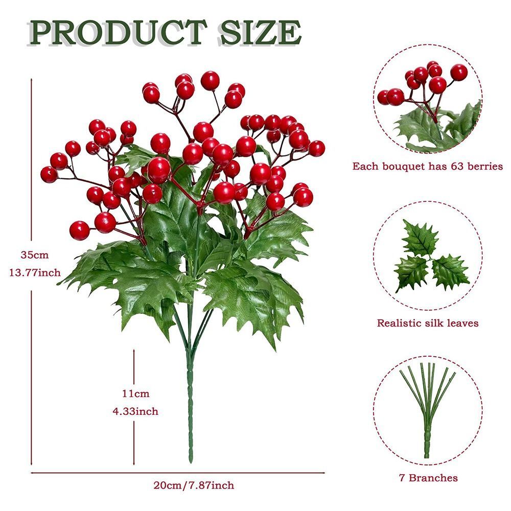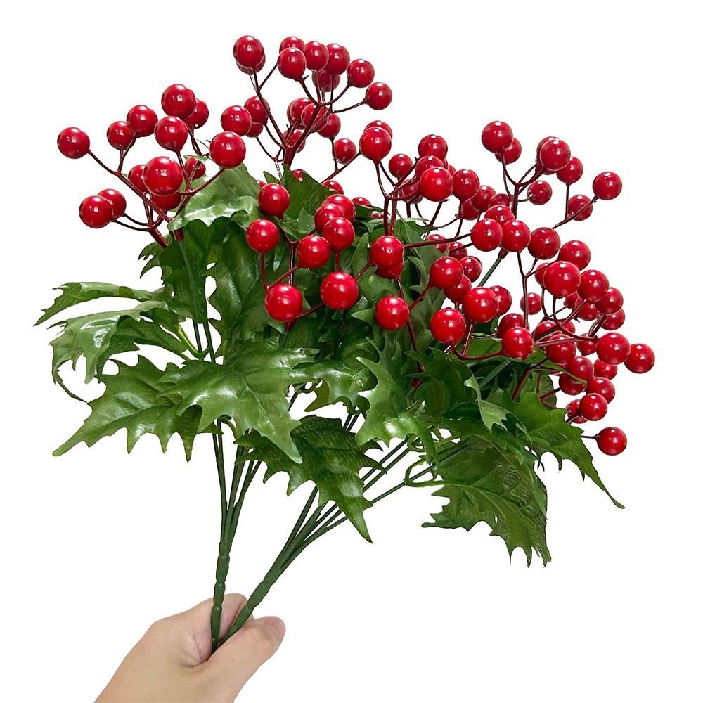 อีโซอิ ประดิษฐ์คริสต์มาสเบอร์รี่,7ระเบียงสีแดงเบอร์รี่พืชประดิษฐ์,เหมือนจริงสก์ท็อป โอรันเมนท์ โฟมสีเขียวฮอลลี่ใบตกแต่งคริสต์มาสปีจัด