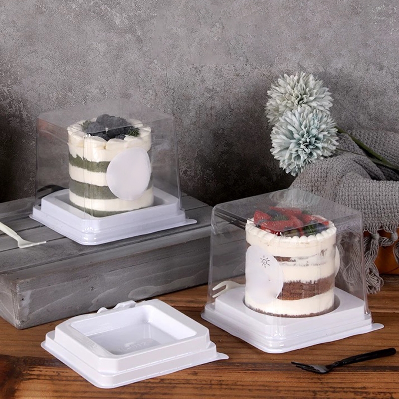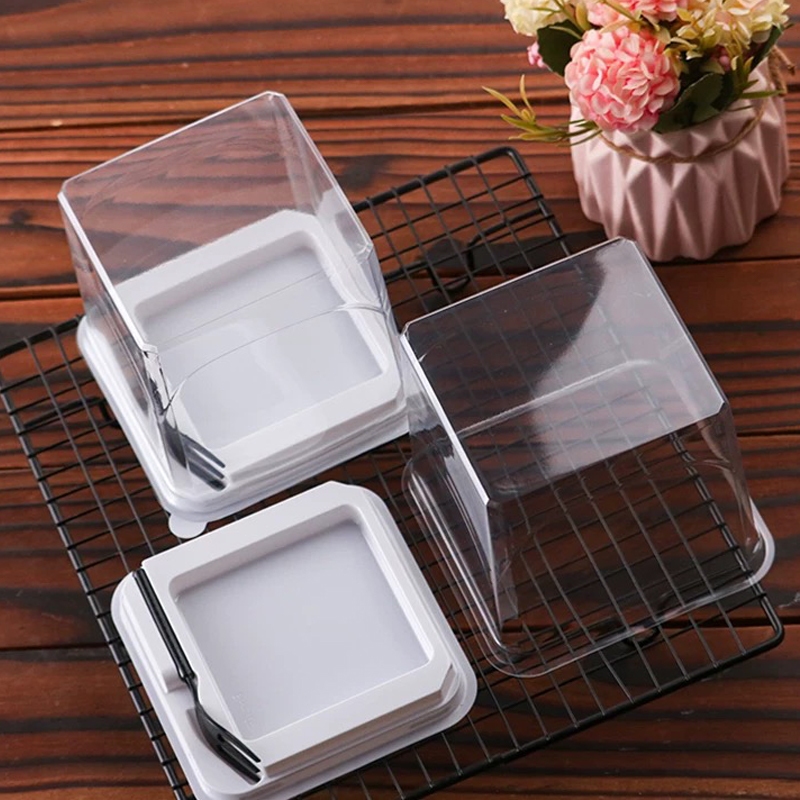 กล่อง กล่องเค้กใส(แพค50ใบ) กล่องบรรจุภัณฑ์เค้ก กล่องแซนวิช กล่องขนม กล่องอาหาร พร้อมฝาใส ฐานสีขาว