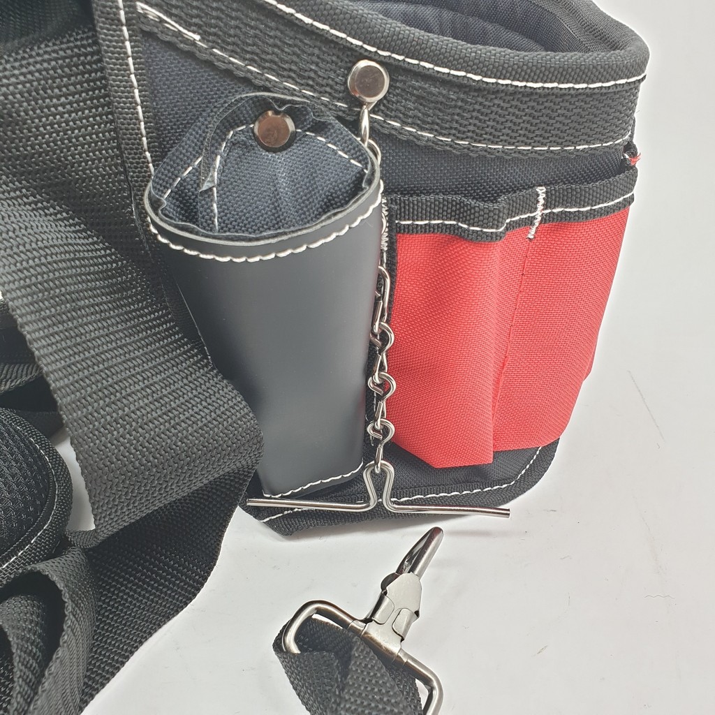 กระเป๋าช่างแบบคาด ยืดหยุ่นและแข็งแรงสีดำ-แดงเปื้อนยากเหมาะกับงานช่างสมัยใหม่ใส่เครื่องมือได้เยอะด้วยช่องเก็บเครื่องมือขนาดใหญ่และขนาดเล็กช่วยให้หยิบจับเครื่องมือได้ง่าย รวดเร็ว และสะดวกมากขึ้น