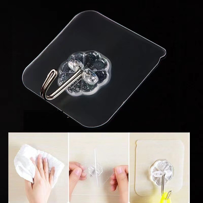 ตะขอแขวนโปร่งใสติดผนังห้องน้ำแบบไม่มีตะปู ตะขอเล็กสำหรับห้องครัว
