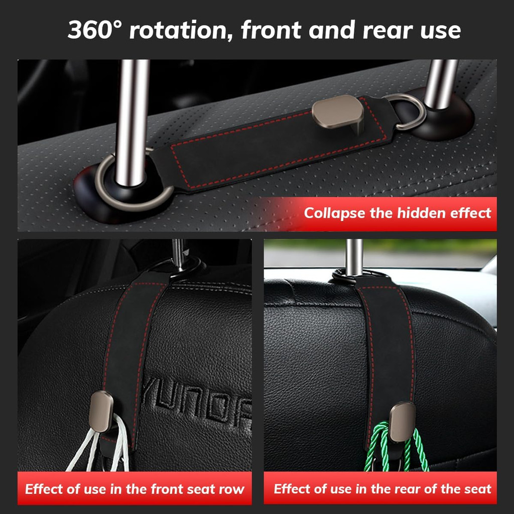การตกแต่งภายในรถแบบแมทช์: ทำจากหนังนุ่มและตะขอโลหะตะขอเกี่ยวพนักพิงศีรษะในรถมีความทนทานและมีสไตล์ ค่ะ เป็นรถหรูหน่อย เหมือนส่วนหนึ่งของรถเลย ที่แขวนรถสามารถรับน้ำหนักได้ถึง 25 กก. ซึ่งตอบสนองความต้องการในการใช้งานประจำวันในรถของคุณ
