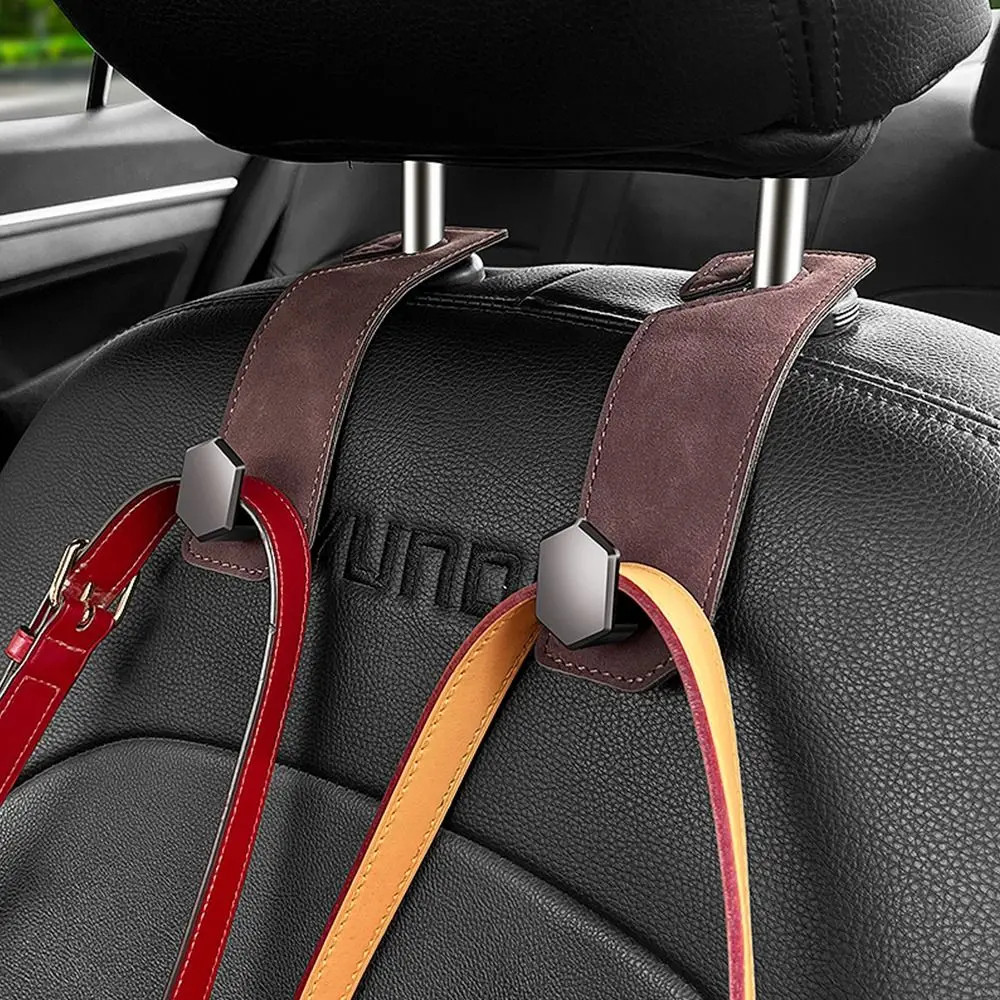 รถที่นั่งกลับตะขอด้วยโลหะและหนังนิ่ม,สากลซ่อนมัลติฟังก์ชั่รถพนักพิงศีรษะแขวนผู้ถือตะขอสําหรับกระเป๋า,กระเป๋าและเสื้อ,รถที่นั่งการจัดเก็บแขวน สแตนด์ 25กิโลกรัม