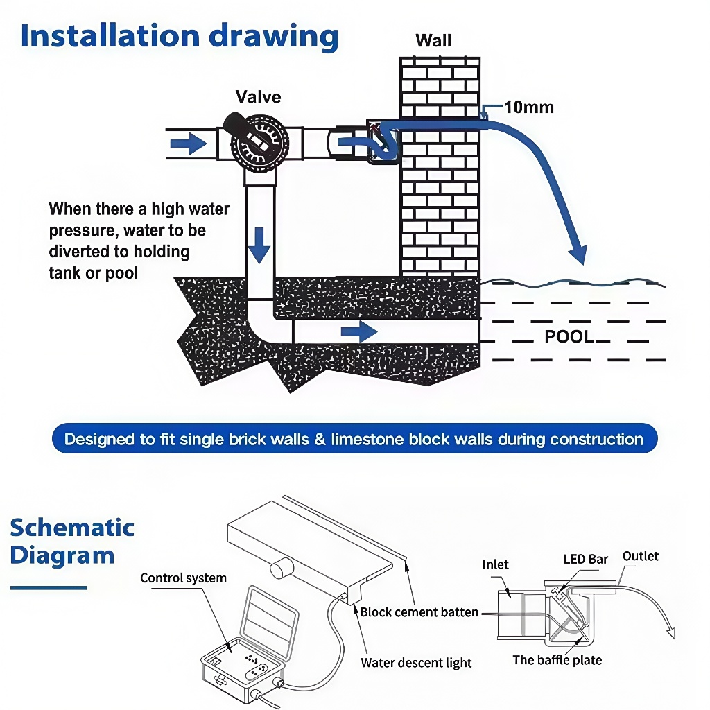 ไฟน้ำตกอะคริลิก RGB led ม่านน้ำตก รางทำม่านน้ำตกสไตล์โมเดิร์น น้ำตกสระว่ายน้ำ น้ำตกบ่อปลา น้ำตกภูมิทัศน์ ตกแต่งกลางแจ้งก