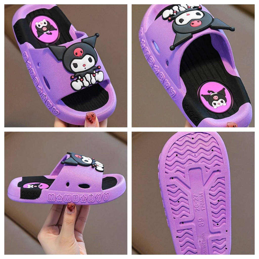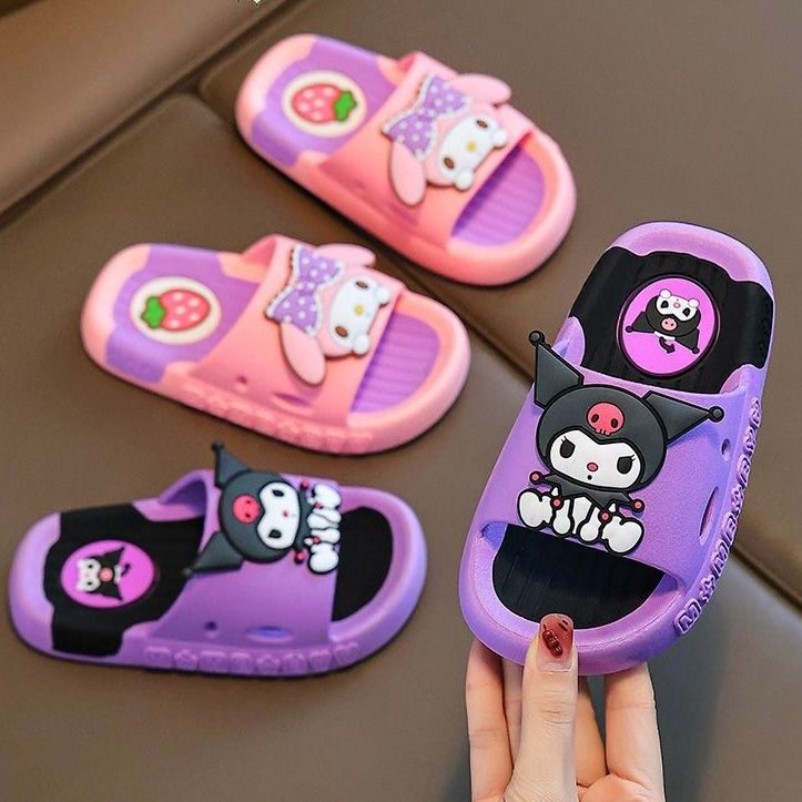 เด็กรองเท้าแตะในร่มรองเท้าแตะสาวเจ้าหญิงน่ารัก Soft Sole การ์ตูนอาบน้ํา Anti-slip กันน้ําเด็ก Kuromi รองเท้าแตะ