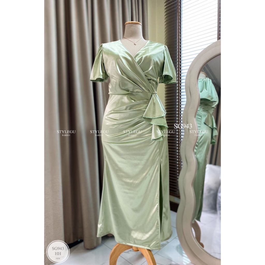 คุณสมบัติ: ชุดเดรสแขนโคมไฟห้าส่วนคอตุ๊กตา