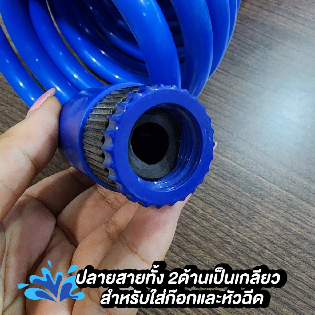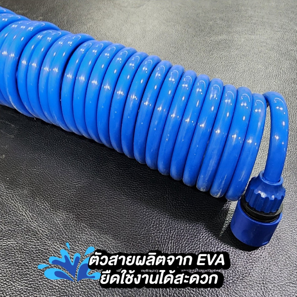 จุดเด่น : ตัวสายผลิตจาก EVA ยืดใช้งานได้สะดวก อายุการใช้งานยาวนาน ไม่แตก ยืด บวม สายไม่ยาวเกะกะ หมดปัญหาเรื่องสายยางพับงอ และพันกัน หดเก็บง่ายประหยัดเนื้อที่ทั้งการใช้งา