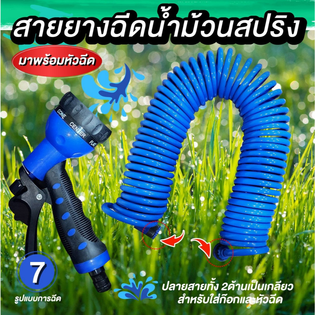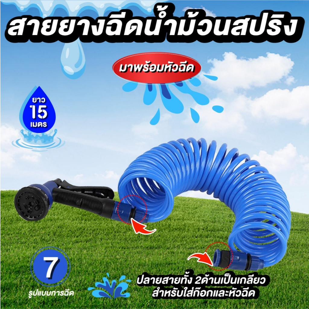 NiftyHome สายยาง สายยางฉีดน้ำม้วนสปริง ประหยัดพื้นที่ พร้อมหัวต่อก็อก ยืดได้ 15 เมตร *ประกัน 1 เดือน*