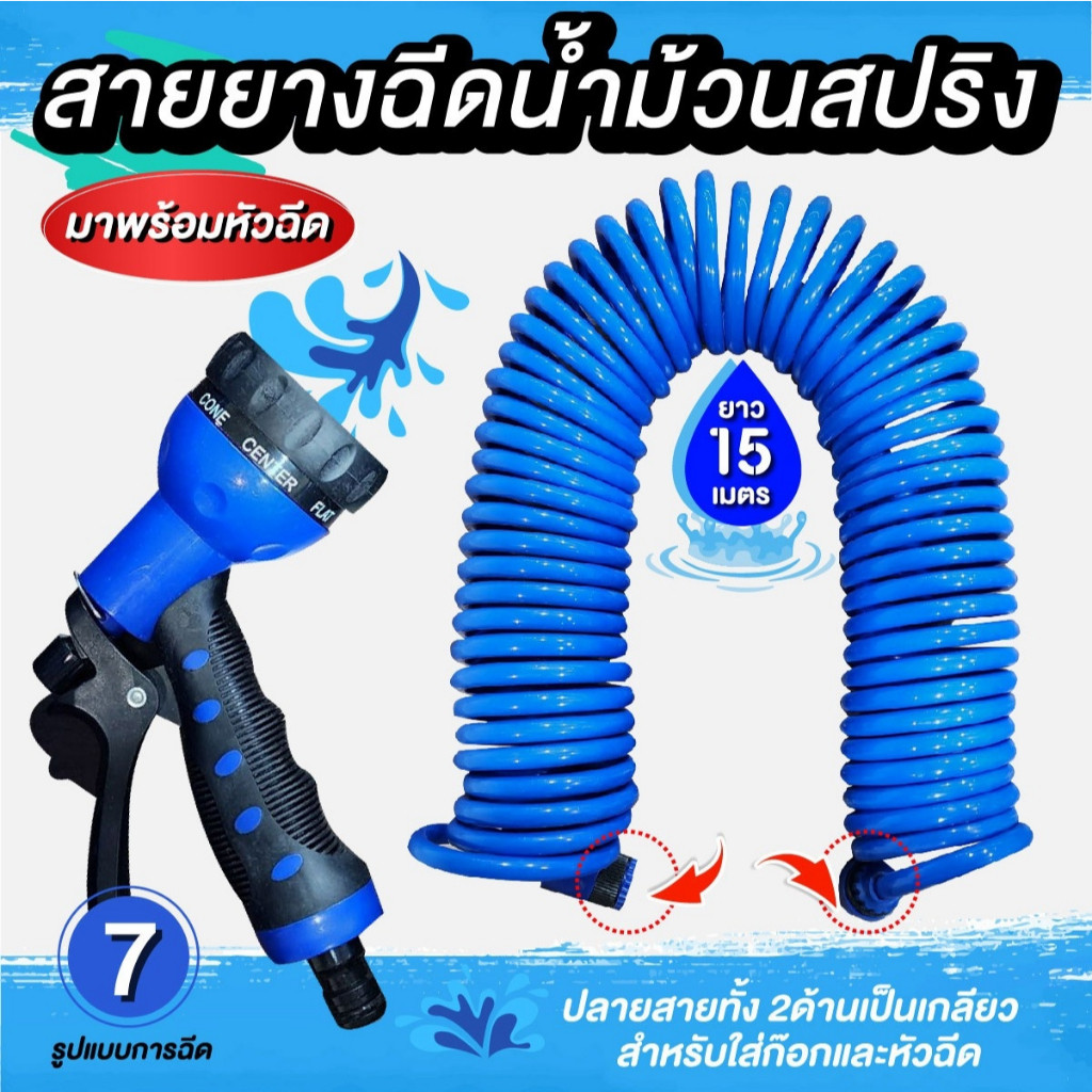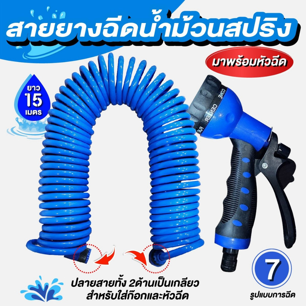 SS8-D0848_สายยางฉีดน้ำม้วนสปริง ความยาว 15 เมตร