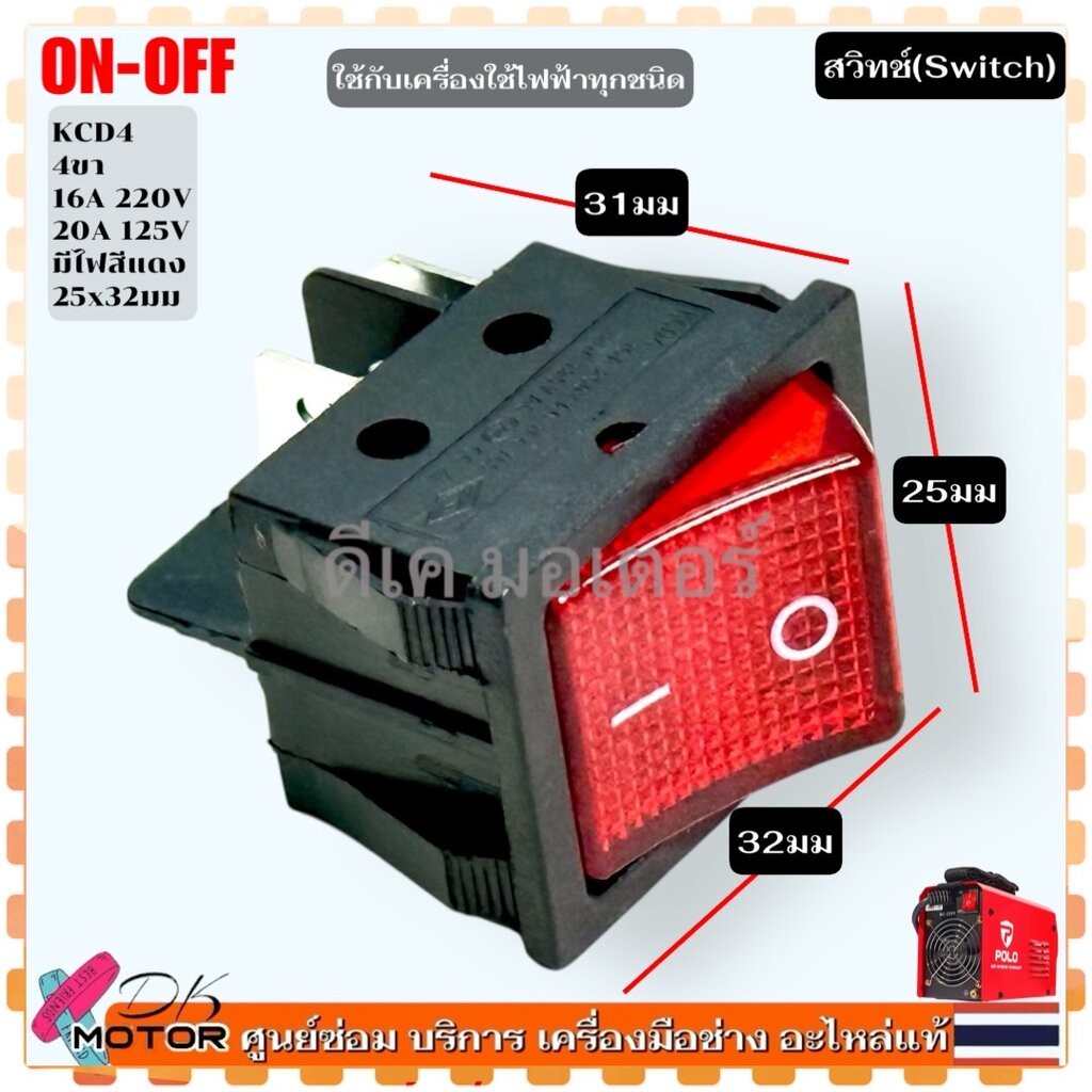 มีไฟ) สวิตช์ 16A, สวิทซ์ ปิด -เปิด 4ขา (ON – OFF) เครื่องใช้ไฟฟ้า ทั่วไป มีไฟสีแดง ตู้เชื่อม มอเตอร์ ปั้มน้ำ ตู้แช่ ต…
