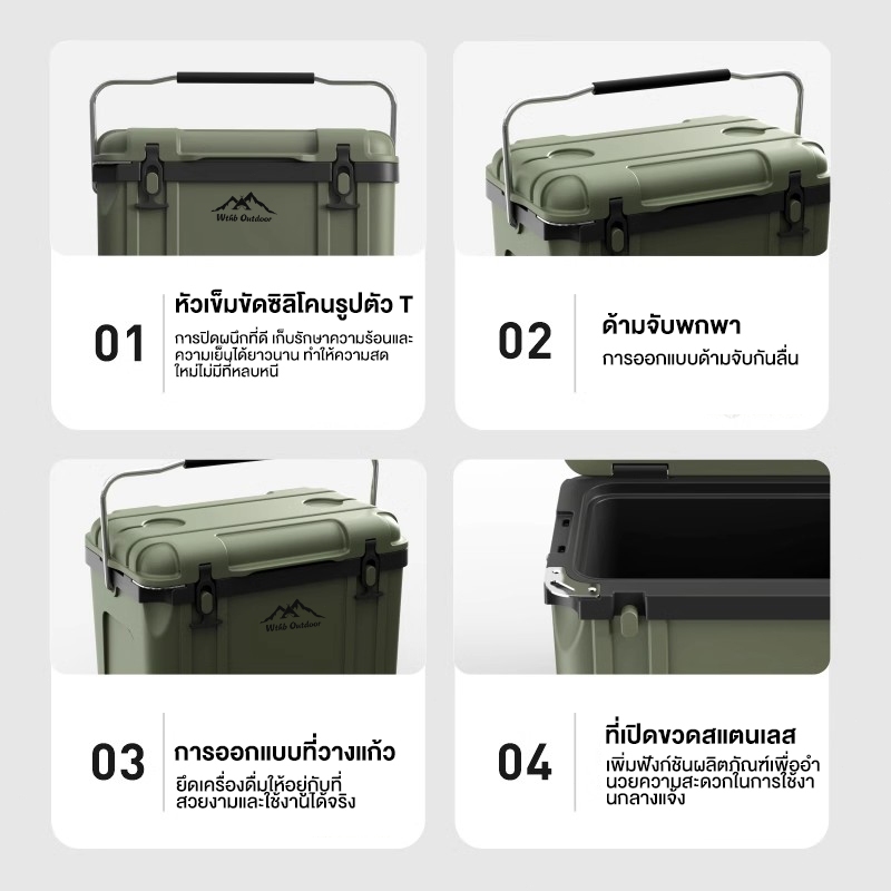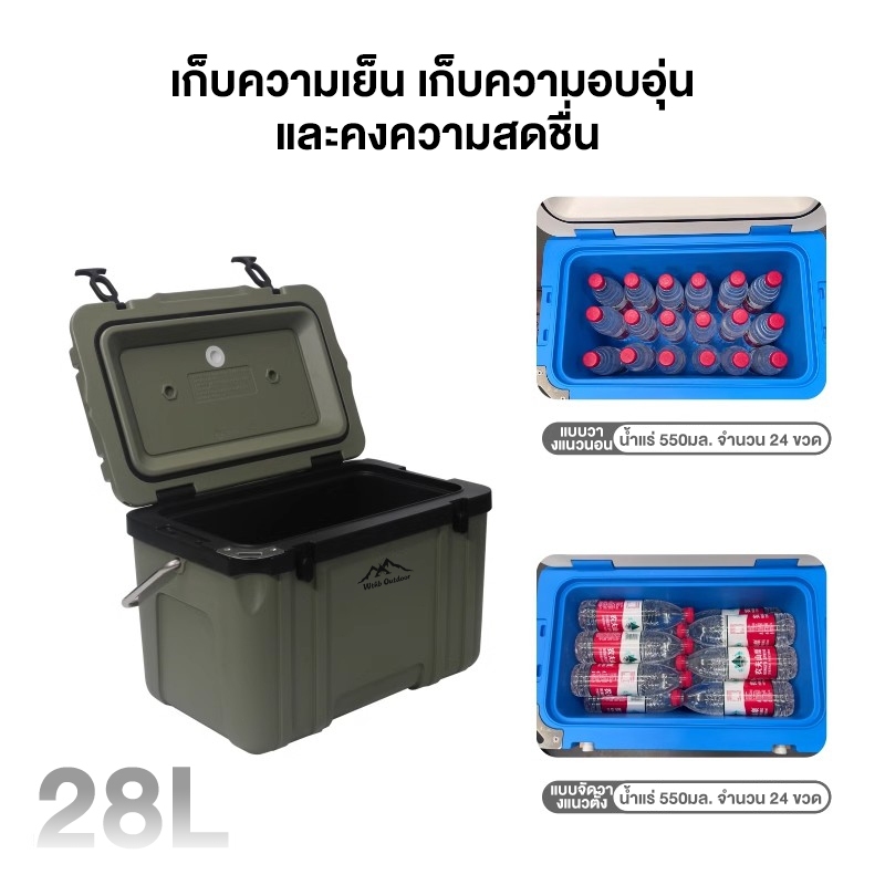 กระติกน้ำแข็ง กระติกน้ำแข็งแคมป์ปิ้ง26Lกระติกเก็บความเย็น ถังเก็บความเย็น ถังน้ำแข็ง Cooler box กล่องทําน้ําแข็ง แบบพกพา