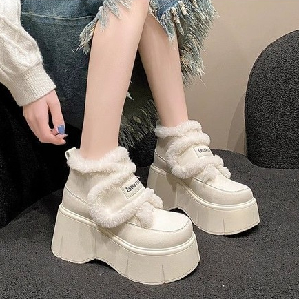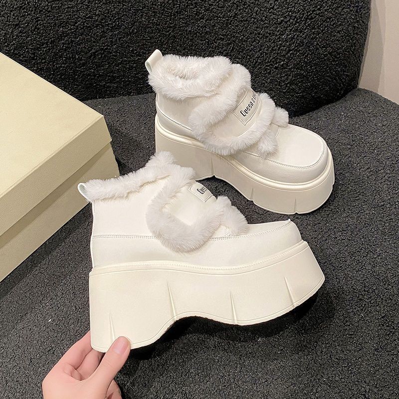 รองเท้าหิมะสีขาวผู้หญิง ซับในตีนตุ๊กแกและทำจากผ้าฝ้าย เหมาะสำหรับฤดูหนาว