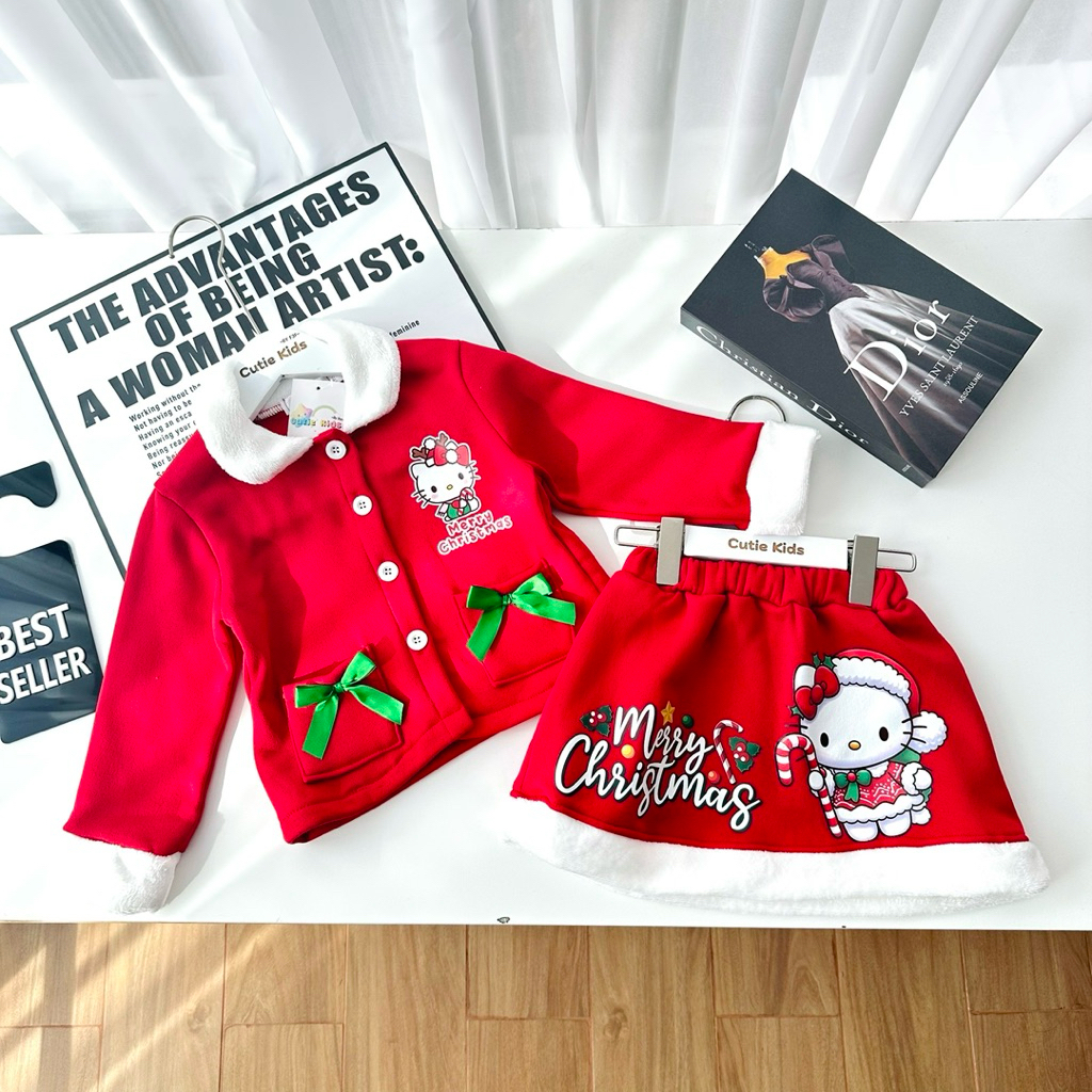 ชุดผ้าสักหลาดสำหรับเด็กผู้หญิงชุดฤดูใบไม้ร่วงและฤดูหนาวสำหรับเด็กผู้หญิงชุดฤดูใบไม้ร่วงและฤดูหนาวสำหรับเด็กผู้หญิงชุดฤดูใบไม้ร่วงและฤดูหนาวสำหรับทารกชุดเด็กผู้หญิงเสื้อสเวตเตอร์คอบัวปักโบว์และกระโปรงคริสต์มาสเต็ต 10-30 กก. ถั่วเด็ก