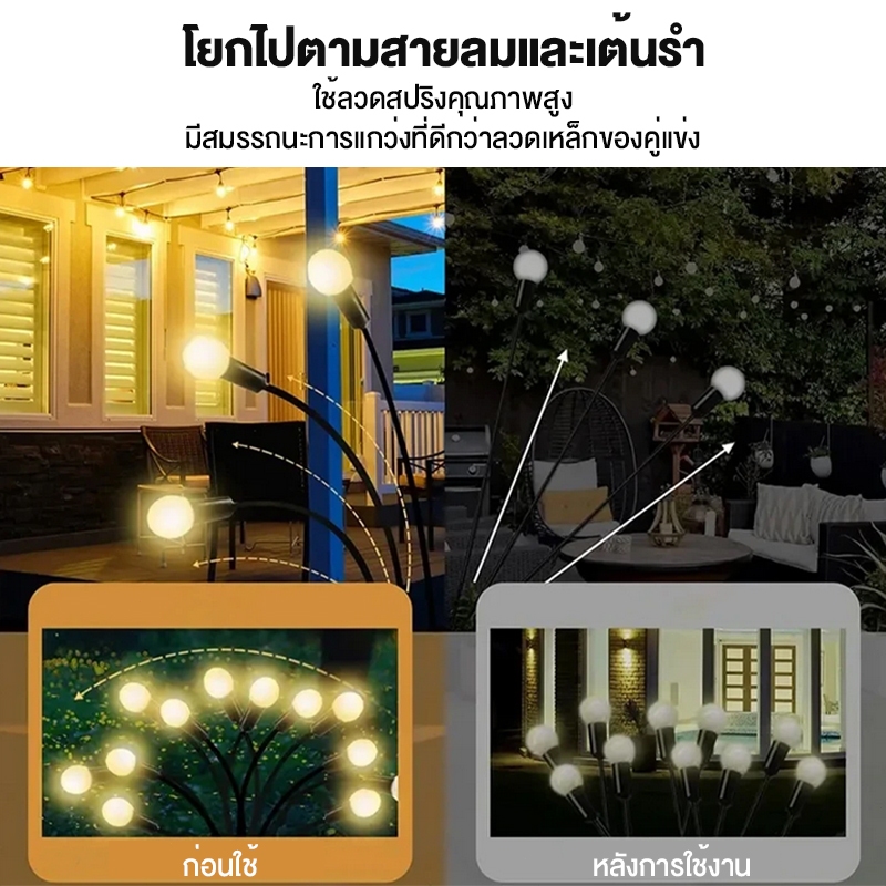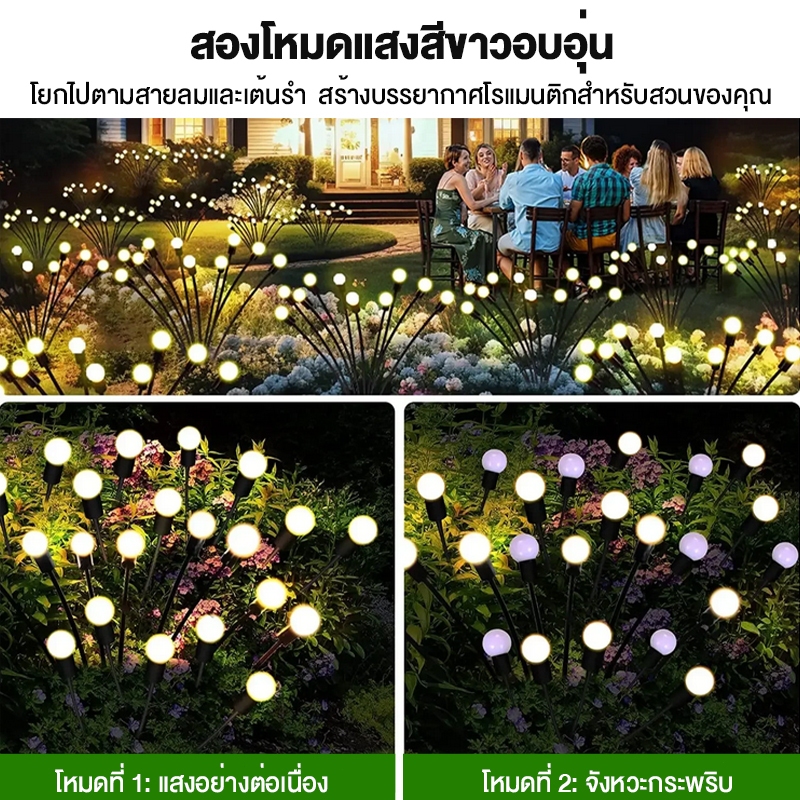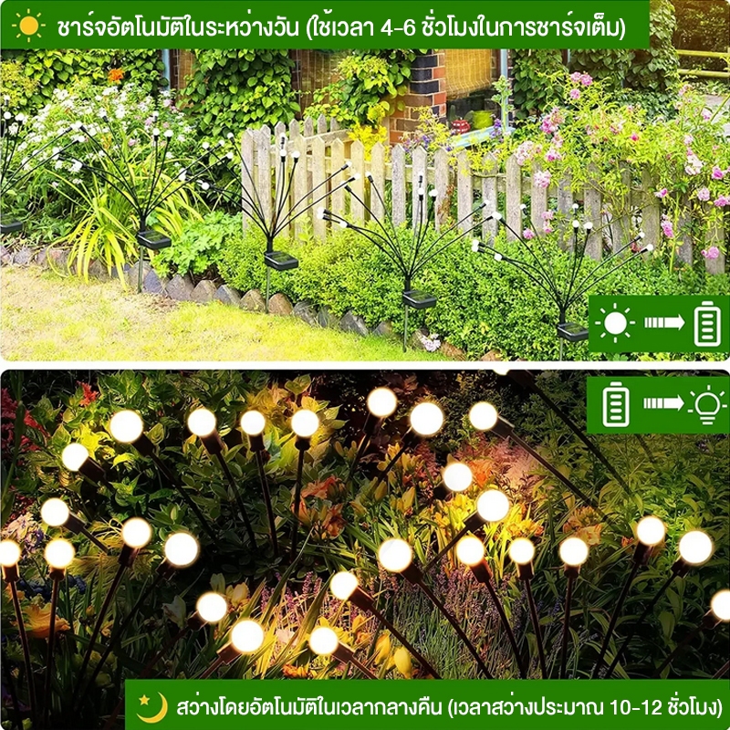 ไฟประดับ ไฟโซลาร์เซลล์ ไฟสนุก กลางแจ้ง กันน้ำ solar light6/8/10 LED แสง Warm Light
