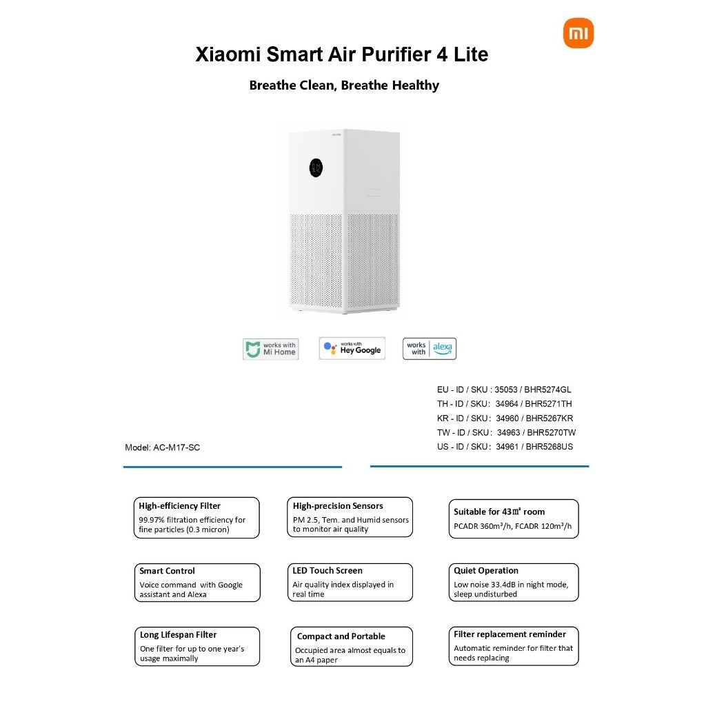 ส่งด่วน ศูนย์ไทย Xiaomi Smart Air Purifier 4 Compact / Lite / Pro เครื่องฟอกอากาศ กรองฝุ่น PM 2.5