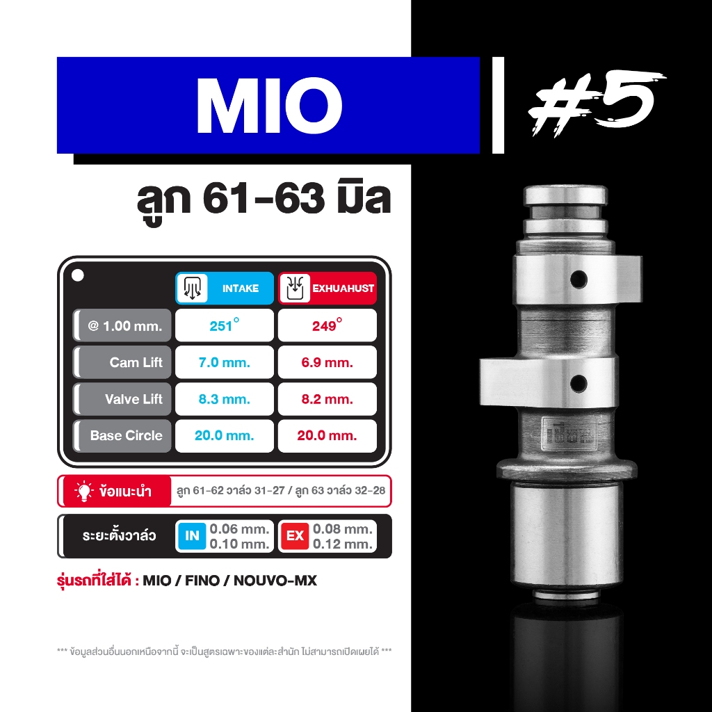 แคมแต่ง MIO ของเซียน (การันตี ที่สุดของแคมชาร์ฟ) คำนวนด้วยโปรแกรม เจียร์ด้วยกระบวนการ CNC แม่นยำทุกตัว !!!