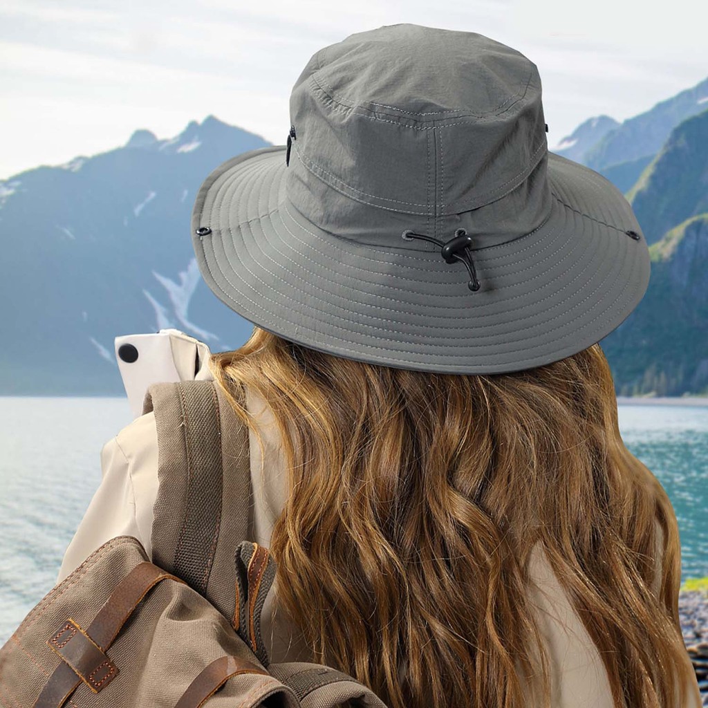หมวกชาวประมงแบบพับเก็บได้ กันน้ำและกันแดด สำหรับการท่องเที่ยว ทำจาก polyester น้ำหนักเบาที่มีสายรัดคาง