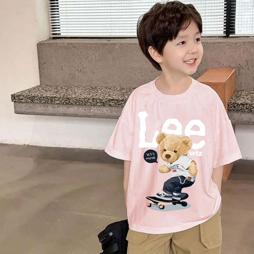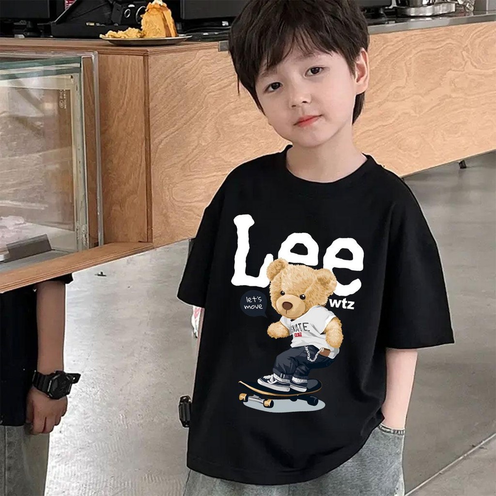 (จัดส่งตลอด 24 ชั่วโมง)พร้อมส่ง เสื้อยืดแขนสั้นเด็ก ลายพิมพ์หมีการ์ตูน คอกลม ใส่สบาย สไตล์เกาหลี