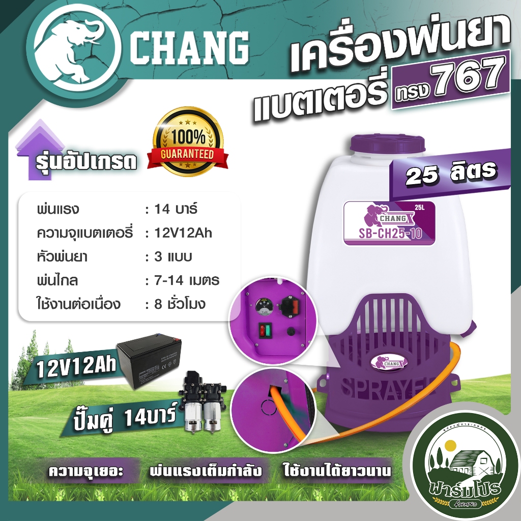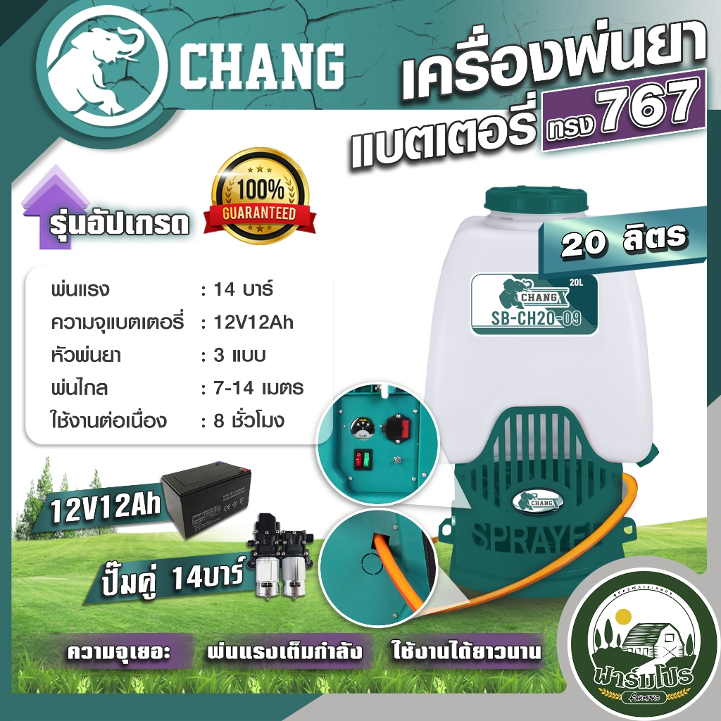 ถังพ่นยาสะพายหลัง767 เครื่องพ่นยาแบตเตอรี่ 20 ลิตร 25 ลิตร ปั๊มคู่14 บาร์ CHANG