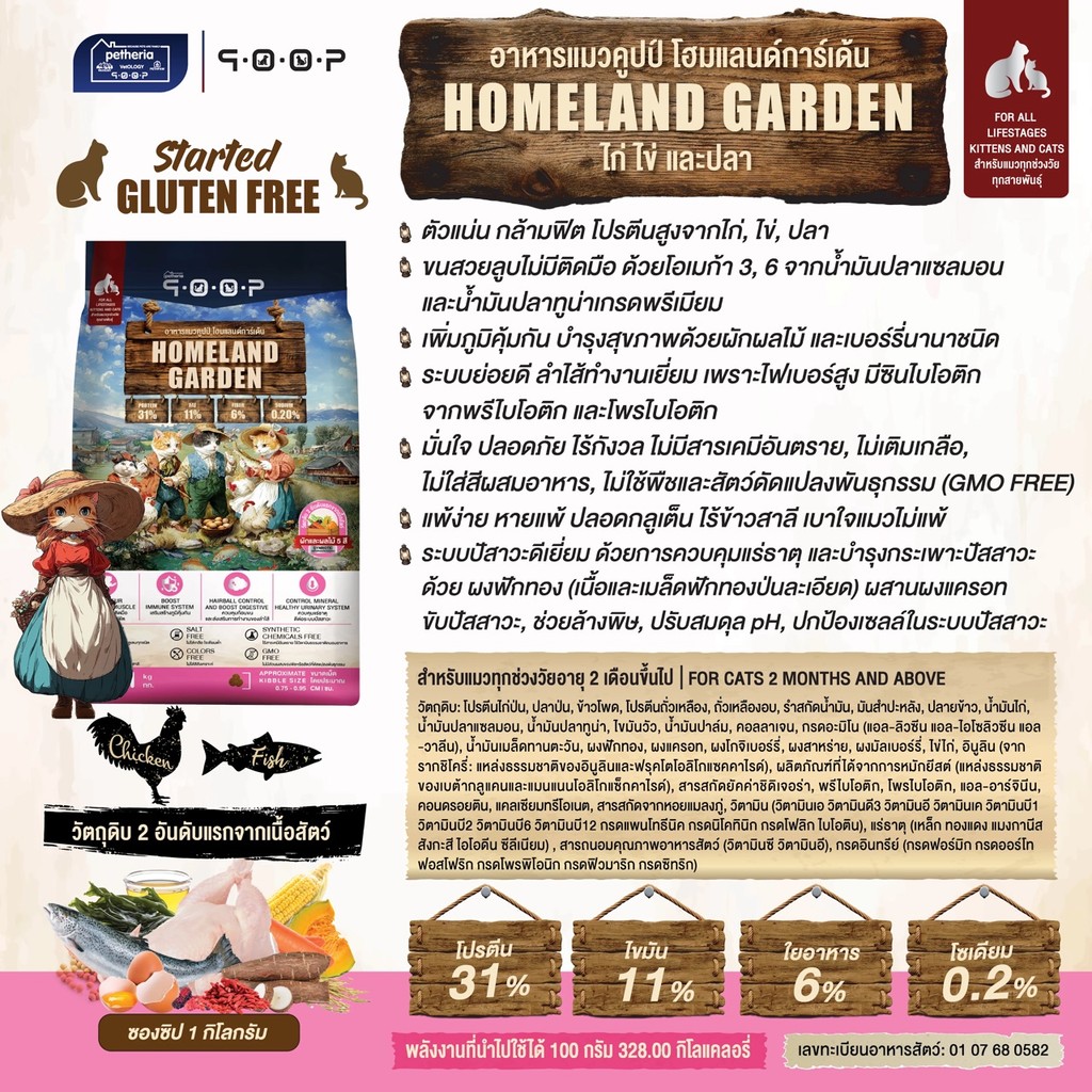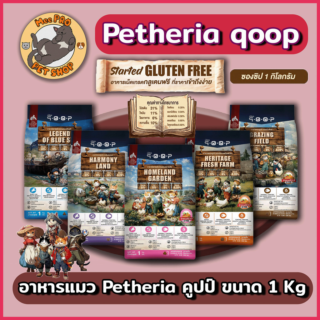 อาหารแมว Petheria qoop ใหม่ เพ็ทเทอเรีย คูปป์ Gluten free ส่วนผสมดี พร้อมผักผลไม้ 5 สีและ Synbiotics
