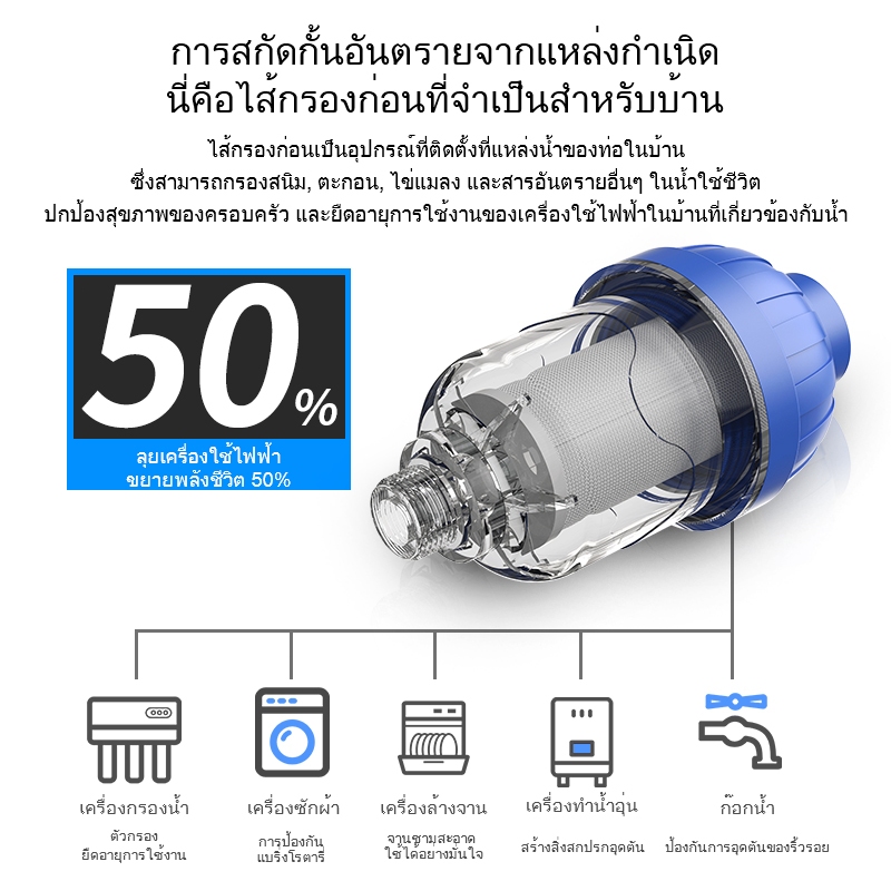 กรองน้ำฝักบัว ลดสิว เครื่องกรองน้ำกรองสแตนเลสตัวกรองด้านหน้าที่ถอดออกได้เครื่องทำน้ำอุ่นเครื่องซักผ้ากรองล่วงหน้า