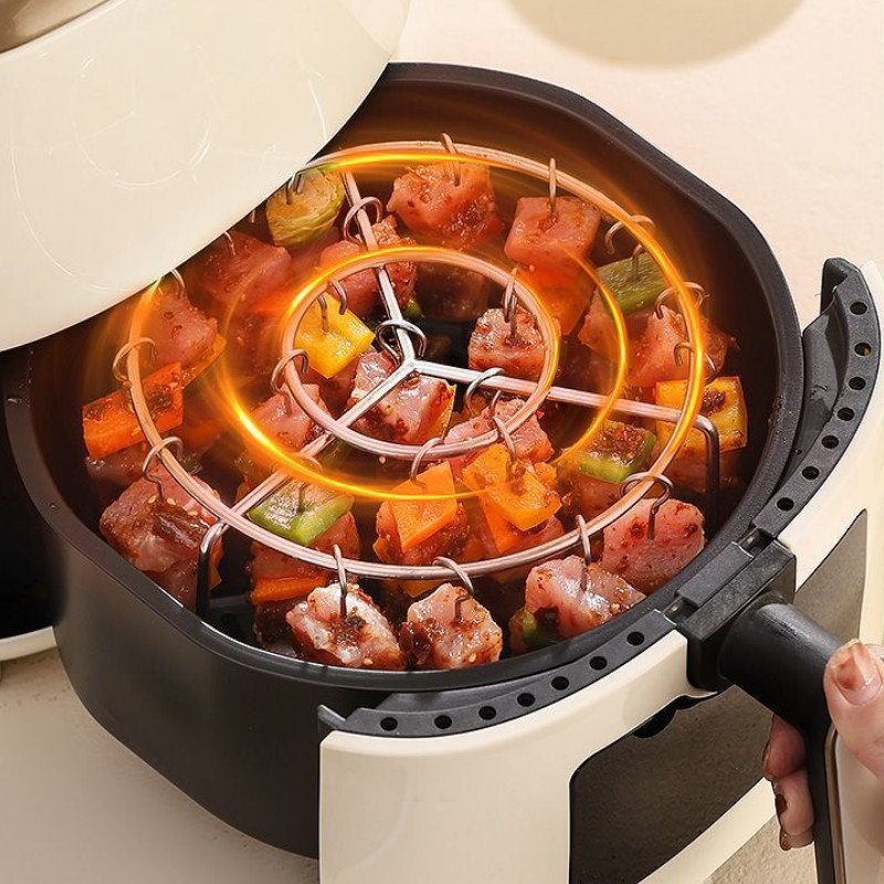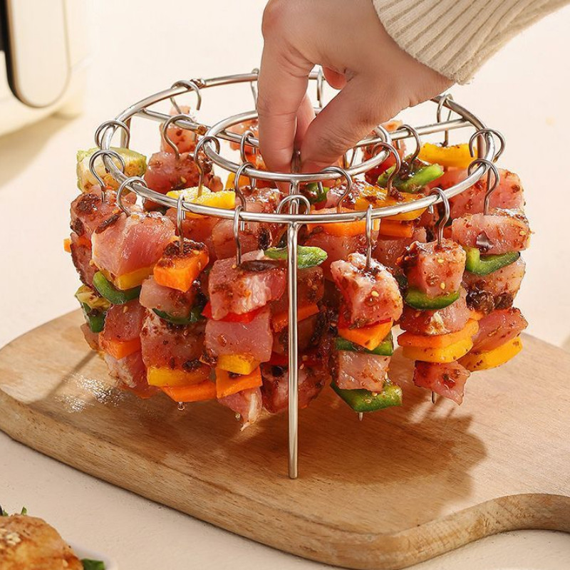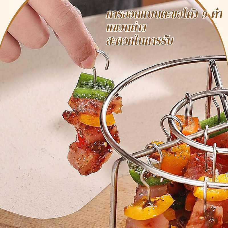 ตะแกรงย่างแนวตั้ง พร้อมไม้เสียบ 24/48ชิ้น สแตนเลส304 ใช้ในหม้อทอดได้ ชั้นวางย่างแนวตั้ง 360 องศา ถอดออกได้