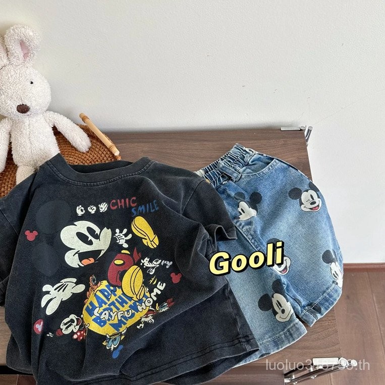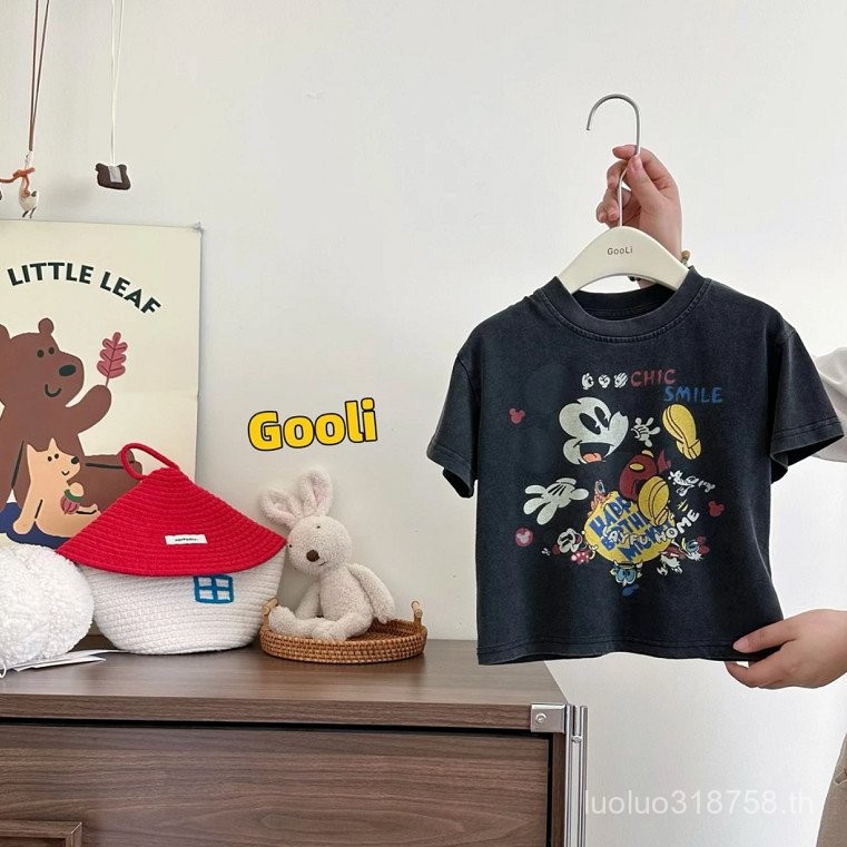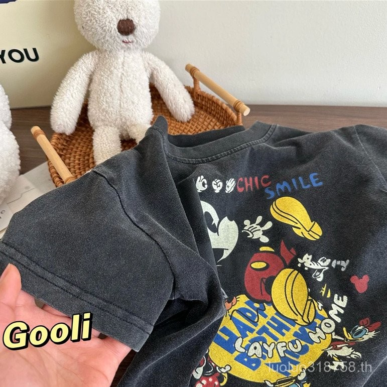 ชุดเด็กผู้ชายสไตล์วินเทจแขนสั้นสบายสำหรับเด็กอนุบาล คอวี ทรงหลวม เสื้อยืดสำหรับเด็กเล็กและเด็ก